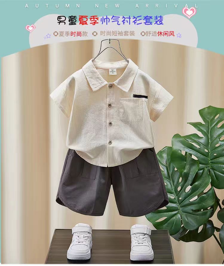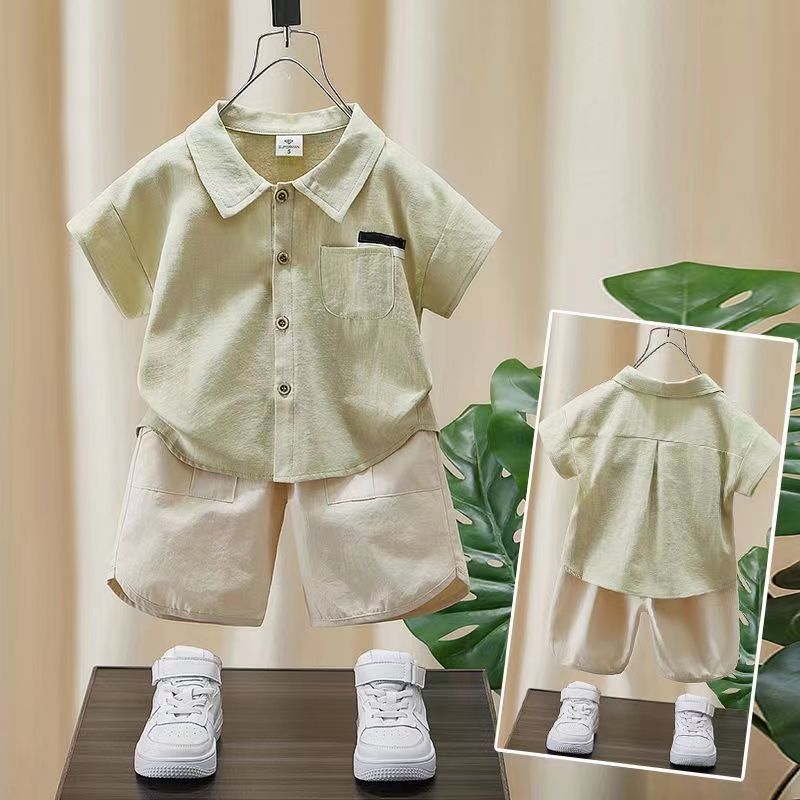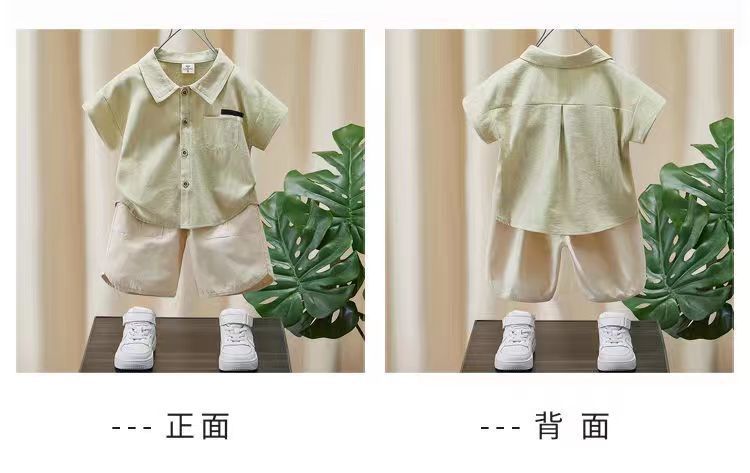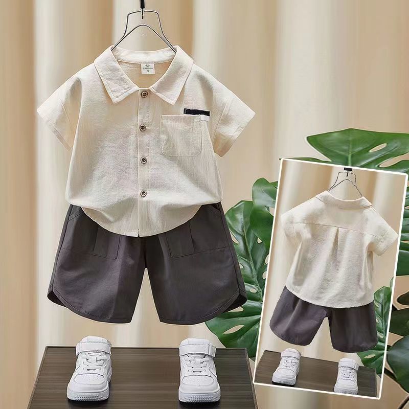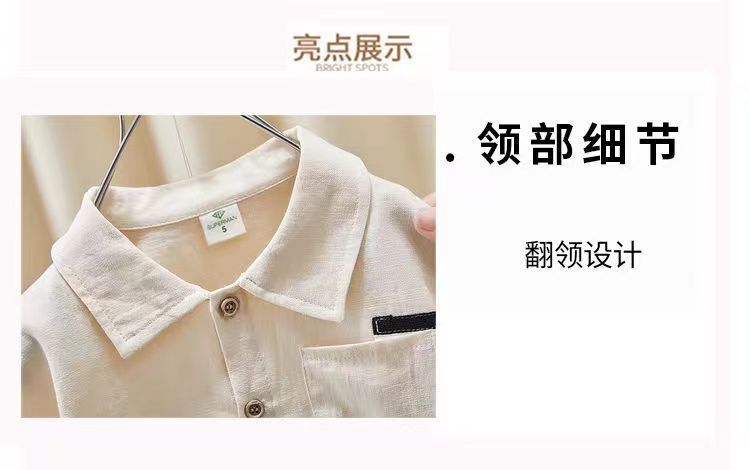 소년 여름 정장 면 및 린넨 2025 새로운 스타일 아동 패션 셔츠 반팔 투피스 세트 잘 생기고 트렌디함스토어 가기