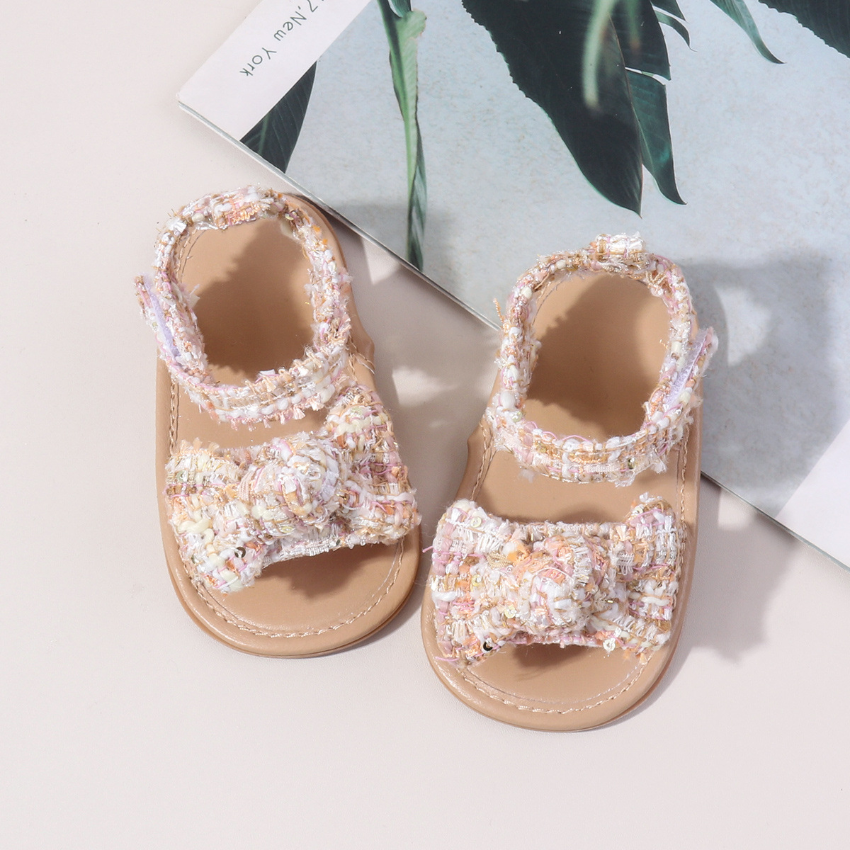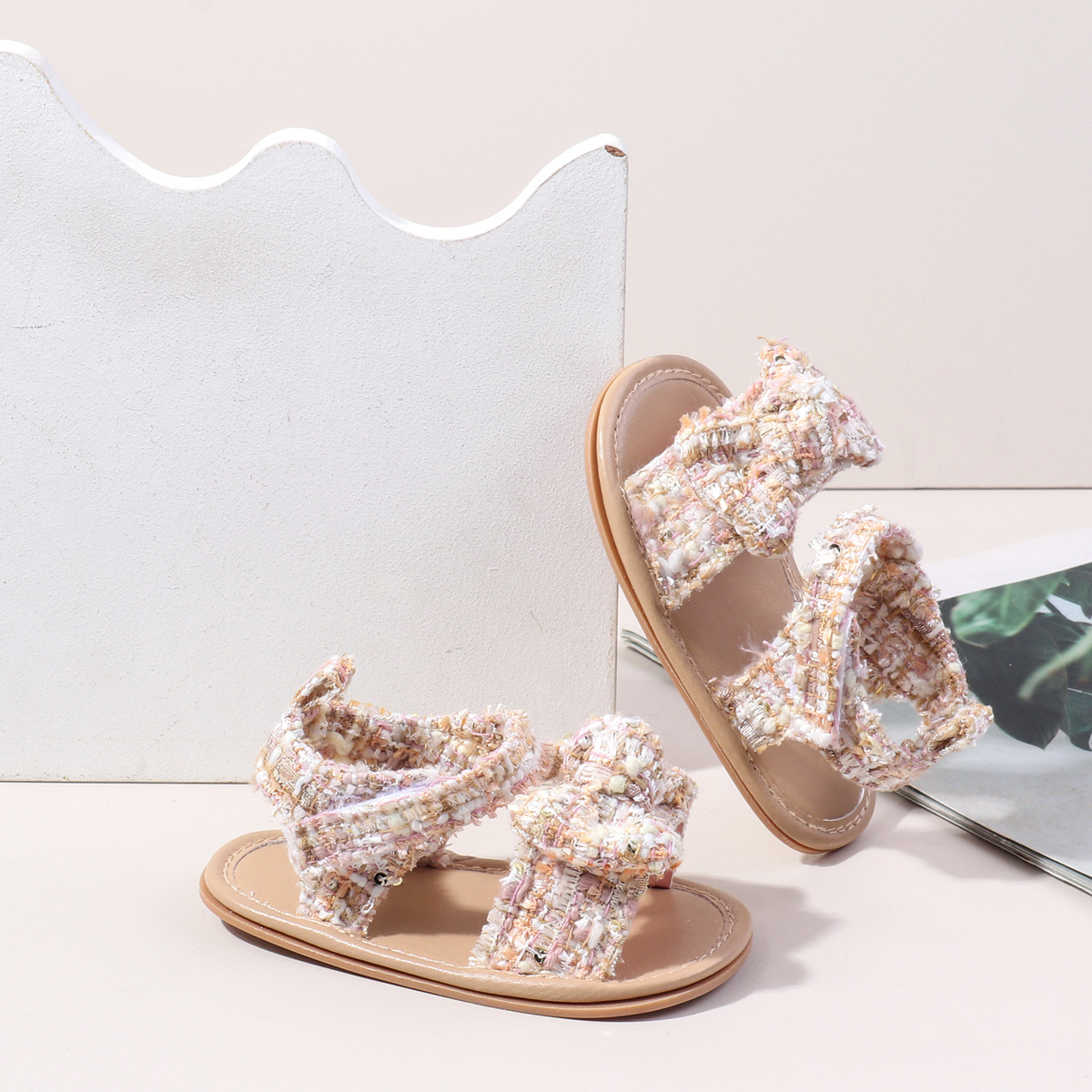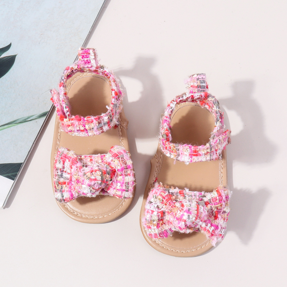 새로운 아기 샌들 샤넬 스타일 격자 무늬 벨크로 고무 바닥 아기 신발 미끄럼 통기성 유아 신발 BSK5126X스토어 가기