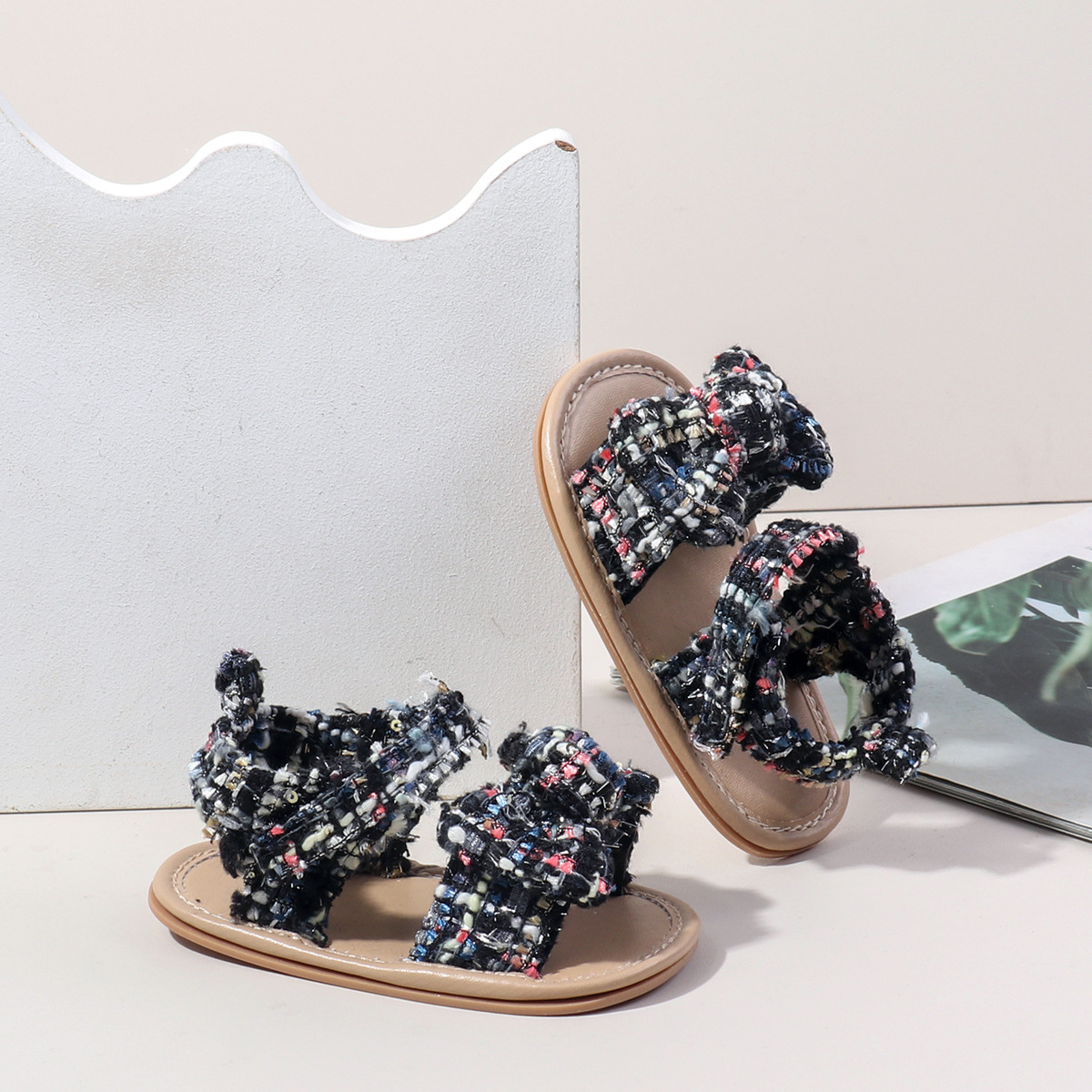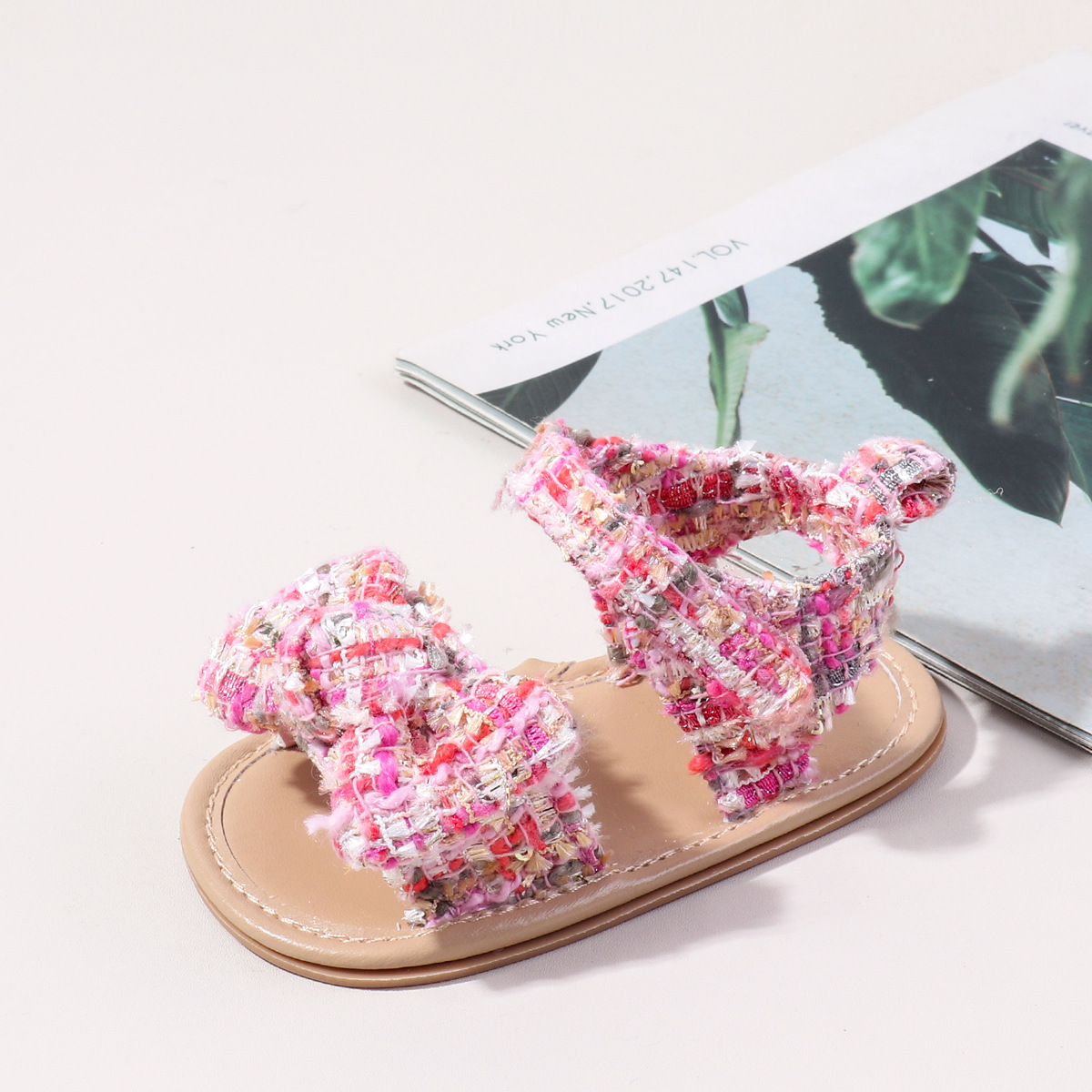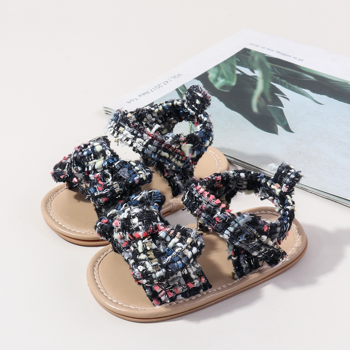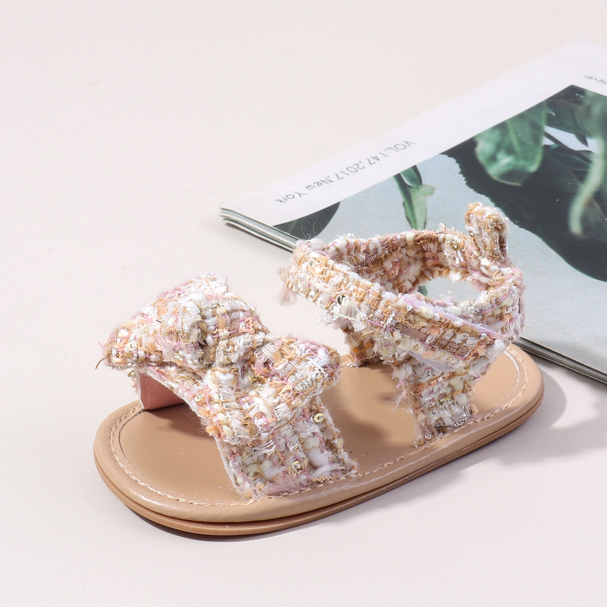 새로운 아기 샌들 샤넬 스타일 격자 무늬 벨크로 고무 바닥 아기 신발 미끄럼 통기성 유아 신발 BSK5126X스토어 가기