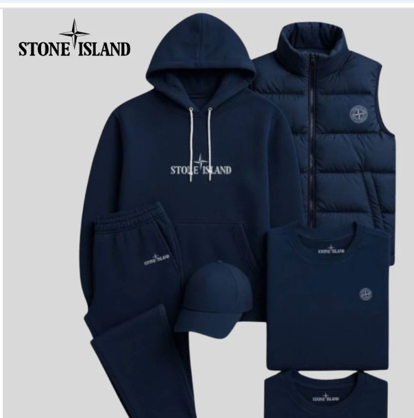 • 네이비 블루 슈트와 네이비 블루 조끼 프린트 스톤 아일랜드