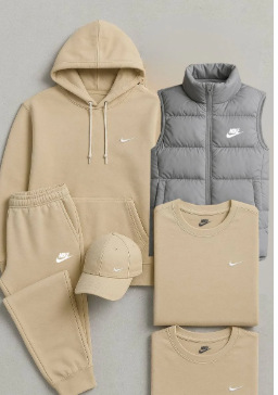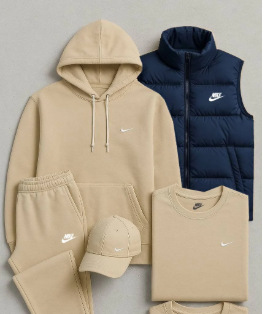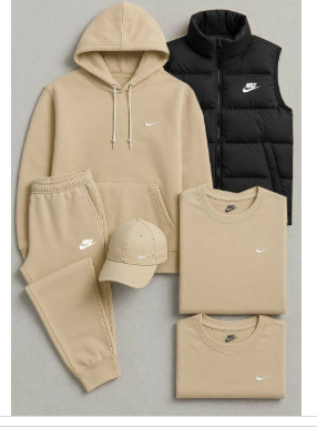 • 살구색 세트에 연회색 조끼, 스톤 아일랜드 프린트