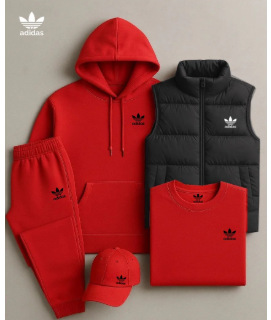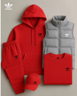 • 레드 스웨트셔츠 슈트 A + 라이트 그레이 조끼