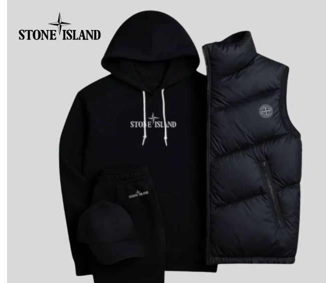 • 살구색 세트에 블랙 조끼 프린트 스톤 아일랜드