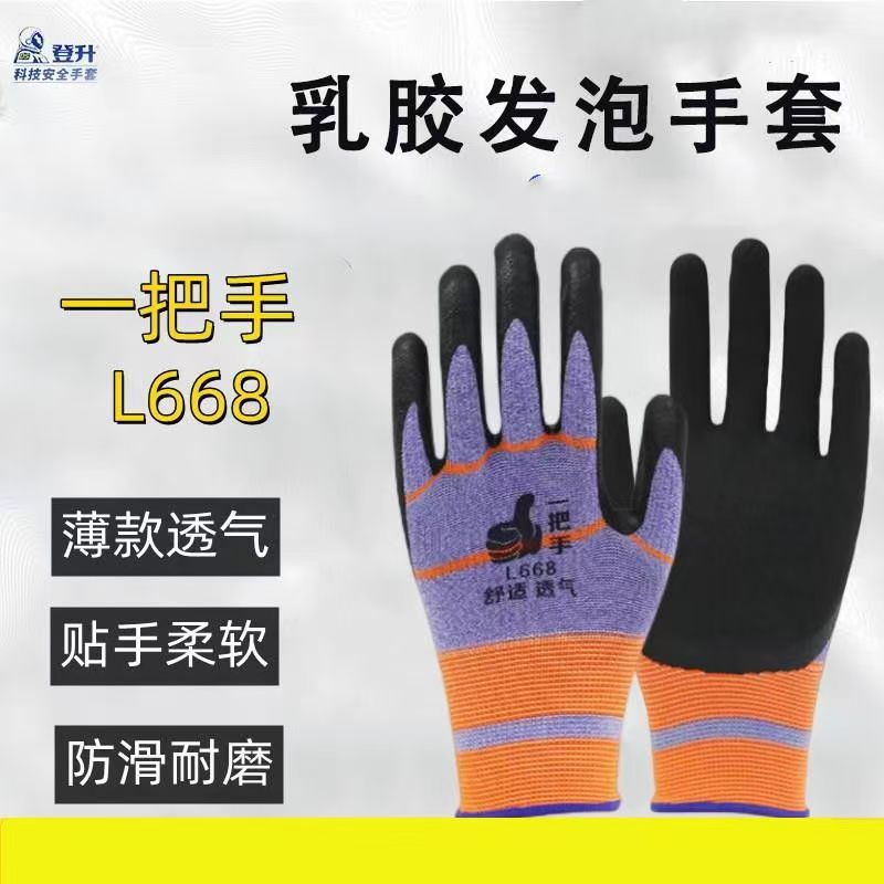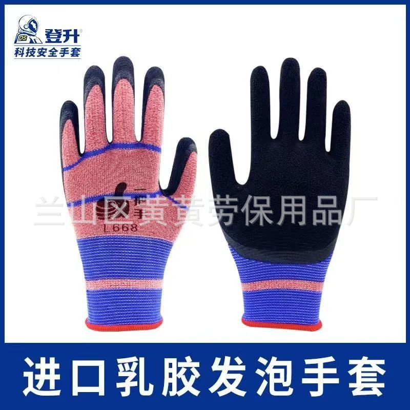 L668 폼 미끄럼 방지 통기성 얇은 작업용 라텍스 함침 작업용 정품 노동 보호 장갑스토어 가기