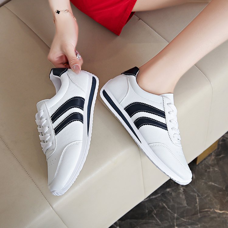 국경 간 새로운 레이스 업 캐주얼 운동화 소프트 솔 올 매치 포레스트 검프 신발 플랫 미끄럼 방지 학생 신발 소프트 가죽 화이트 신발스토어 가기