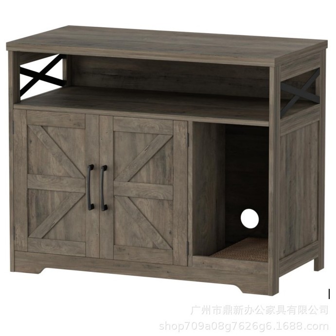 가정용 애완동물 나무 고양이 캐비닛 숨겨진 수납 고양이 쓰레기 캐비닛 측면 캐비닛 고양이 스크래치 패드 고양이 둥지 포함 맞춤형 국경 간 공급스토어 가기