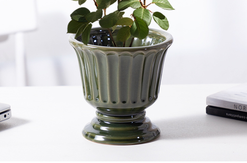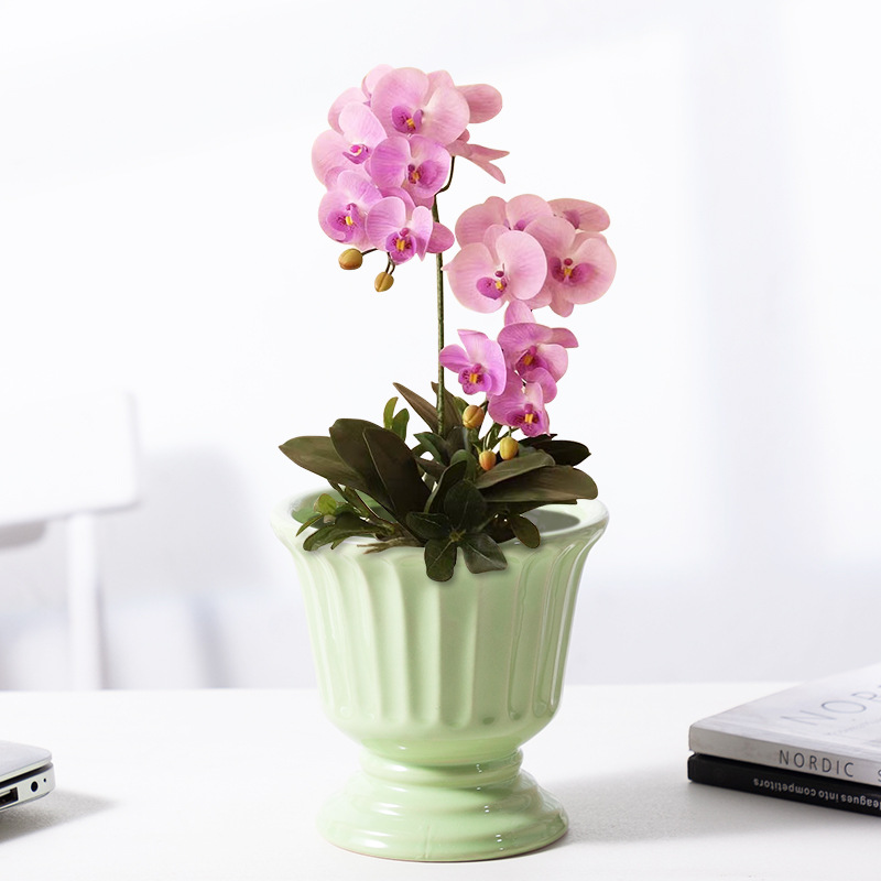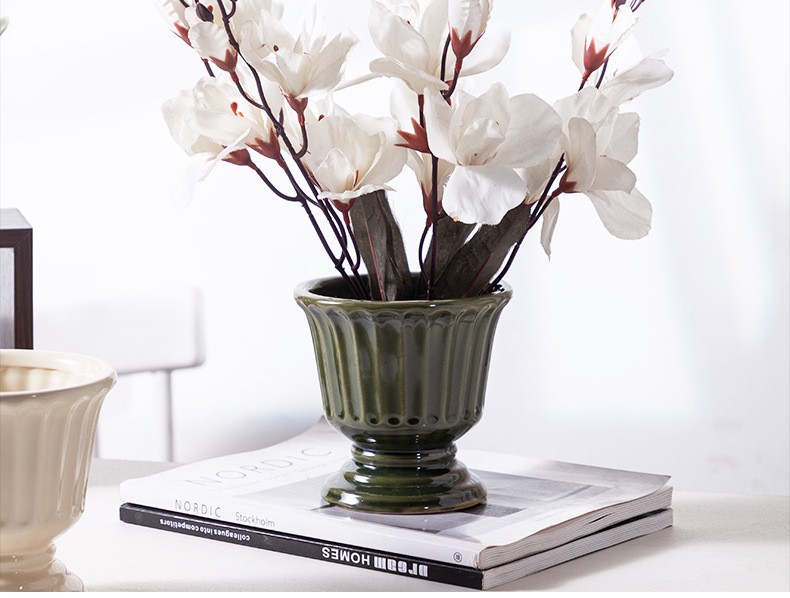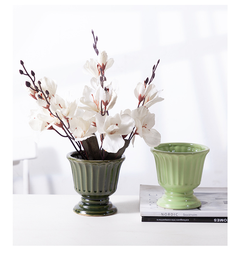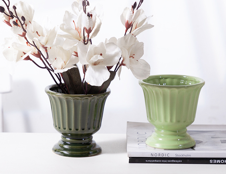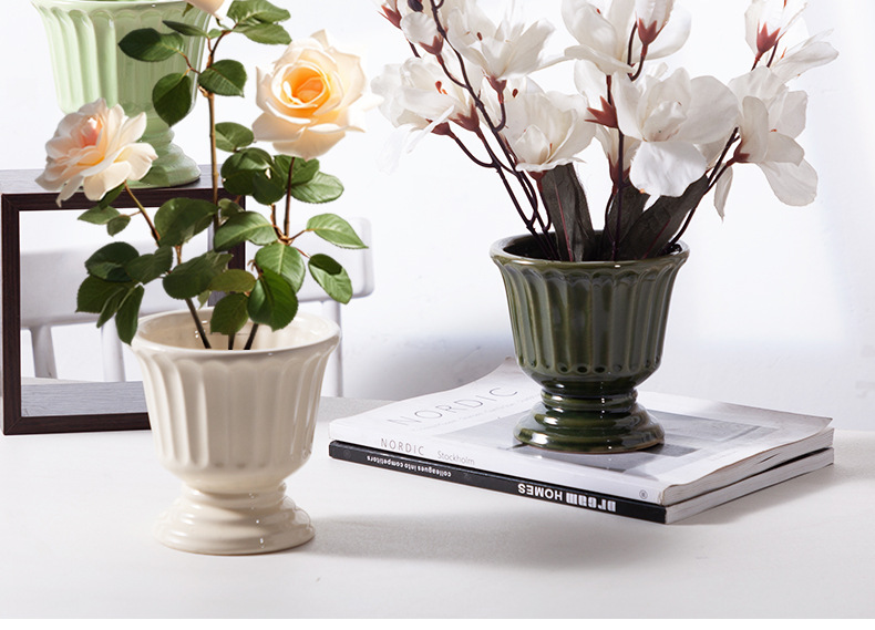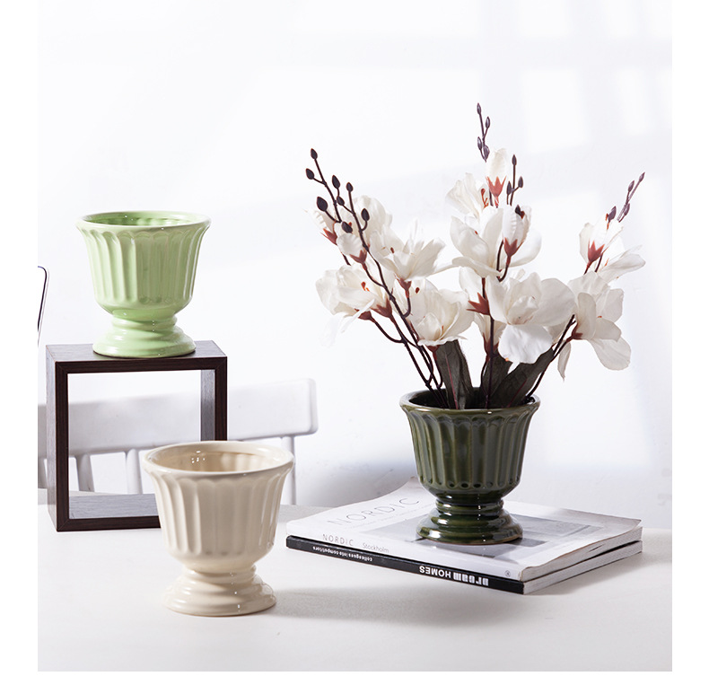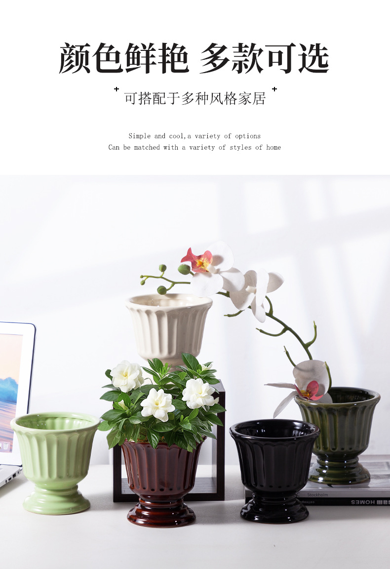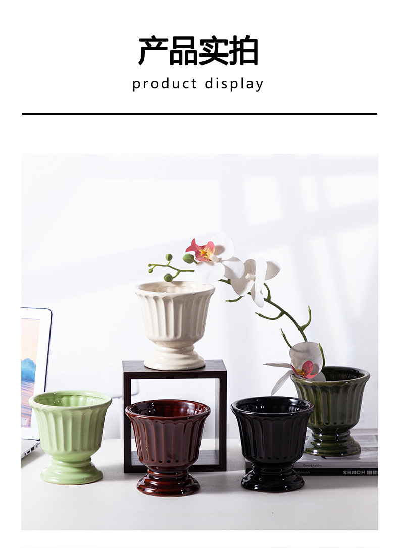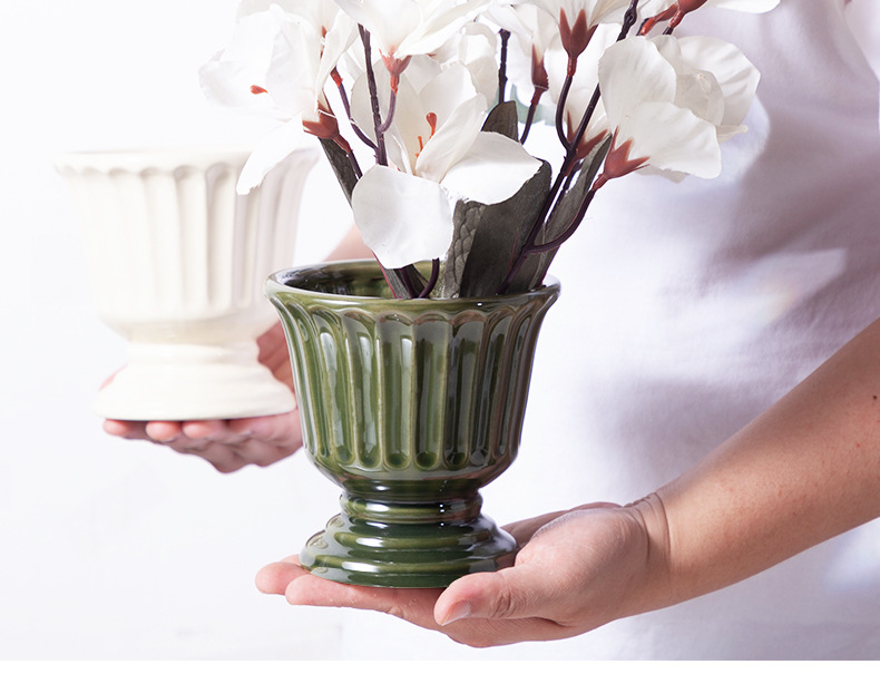 로마 기둥 프랑스 세라믹 꽃병 다육 나비 난초 꽃꽂이 꽃 냄비 구멍이있는 높은 꽃 냄비 호텔 장식품