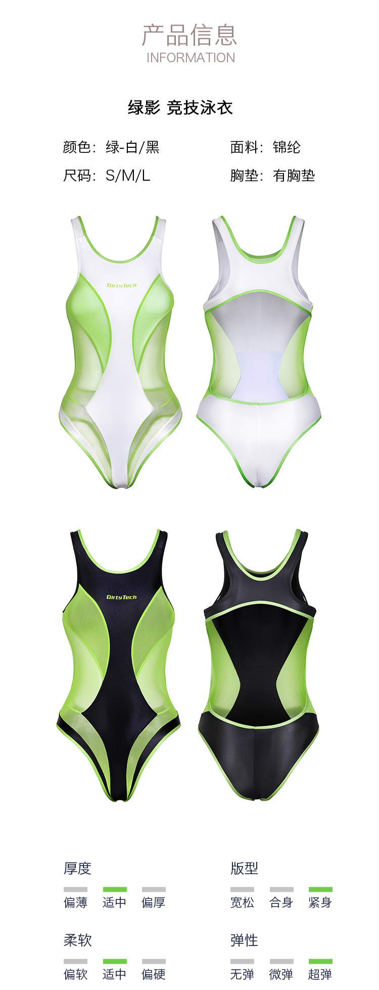 그린 섀도우 경기용 수영복 원피스 메쉬 투명 스플라이싱 하이 슬릿 수영 2차원 코스 섹시하고 귀여운 온천스토어 가기