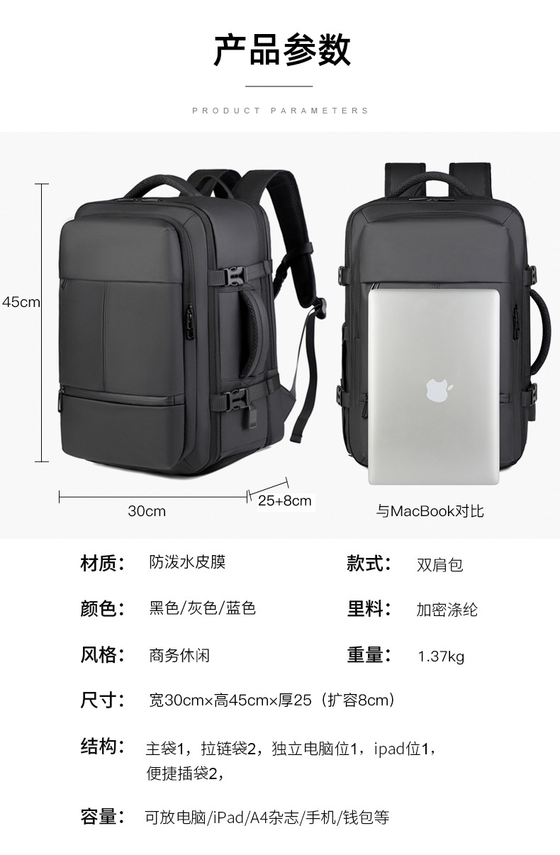 신형 기내 반입용 백팩 남성 비즈니스 다기능 확장형 백팩 대용량 신발 수납 고급 여행 가방