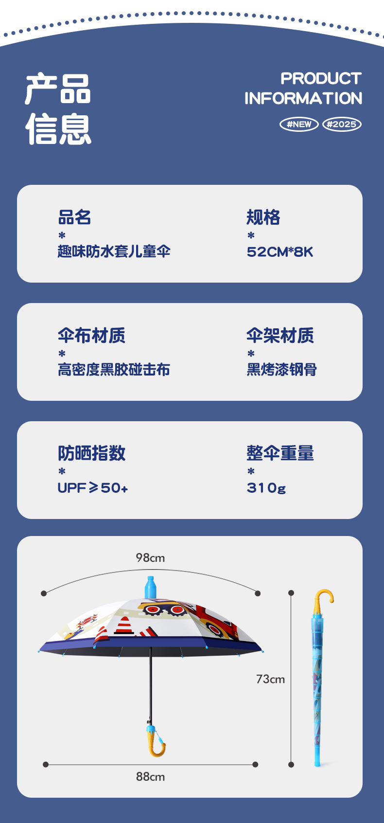새로운 유치원 여자 초등학생 어린이 아기 어린이 우산 만화 자동 차양 어린이 남자 경량 태양 우산