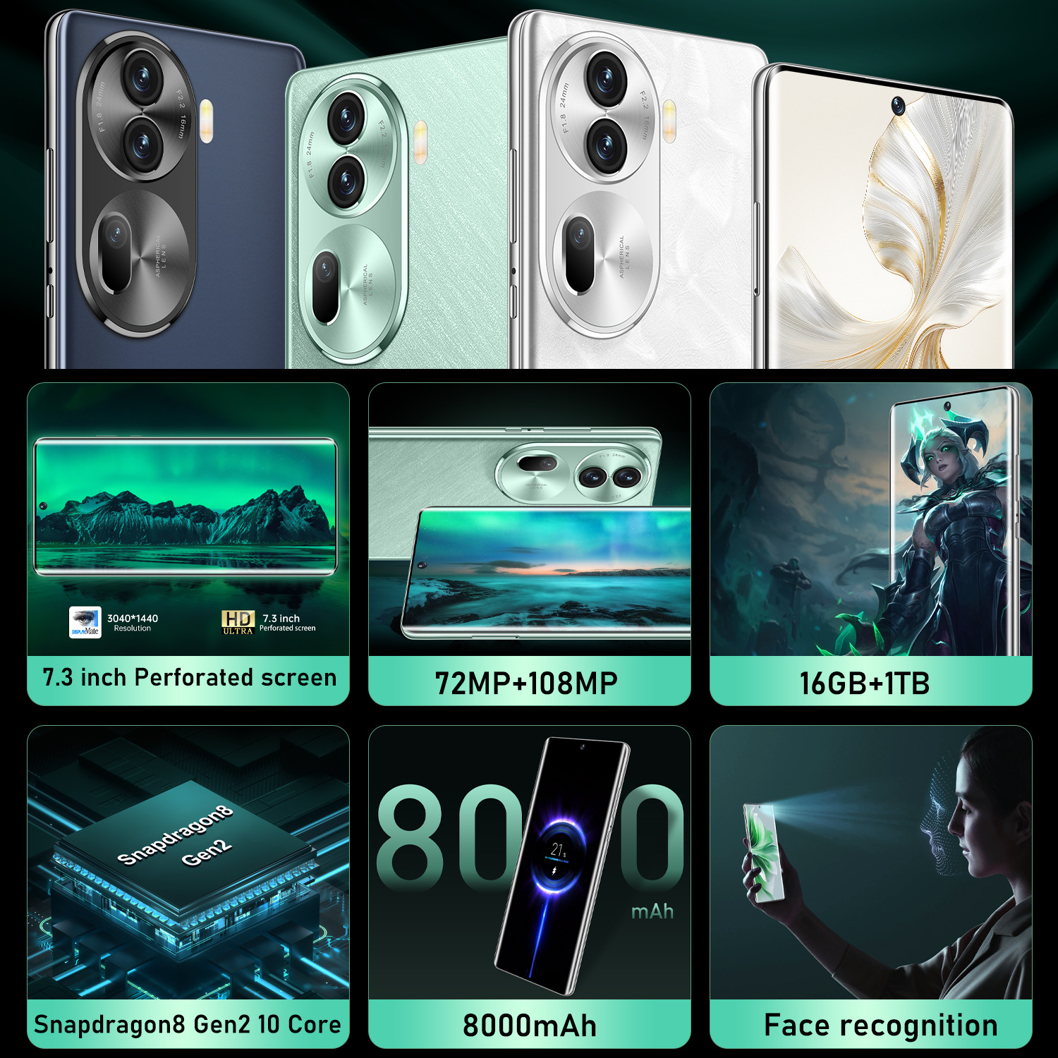 2025년 인기 판매 해외 직구 휴대폰 Reno11 Pro 진정한 4G 펀치홀 7.3인치 대화면 16+1T 스마트폰