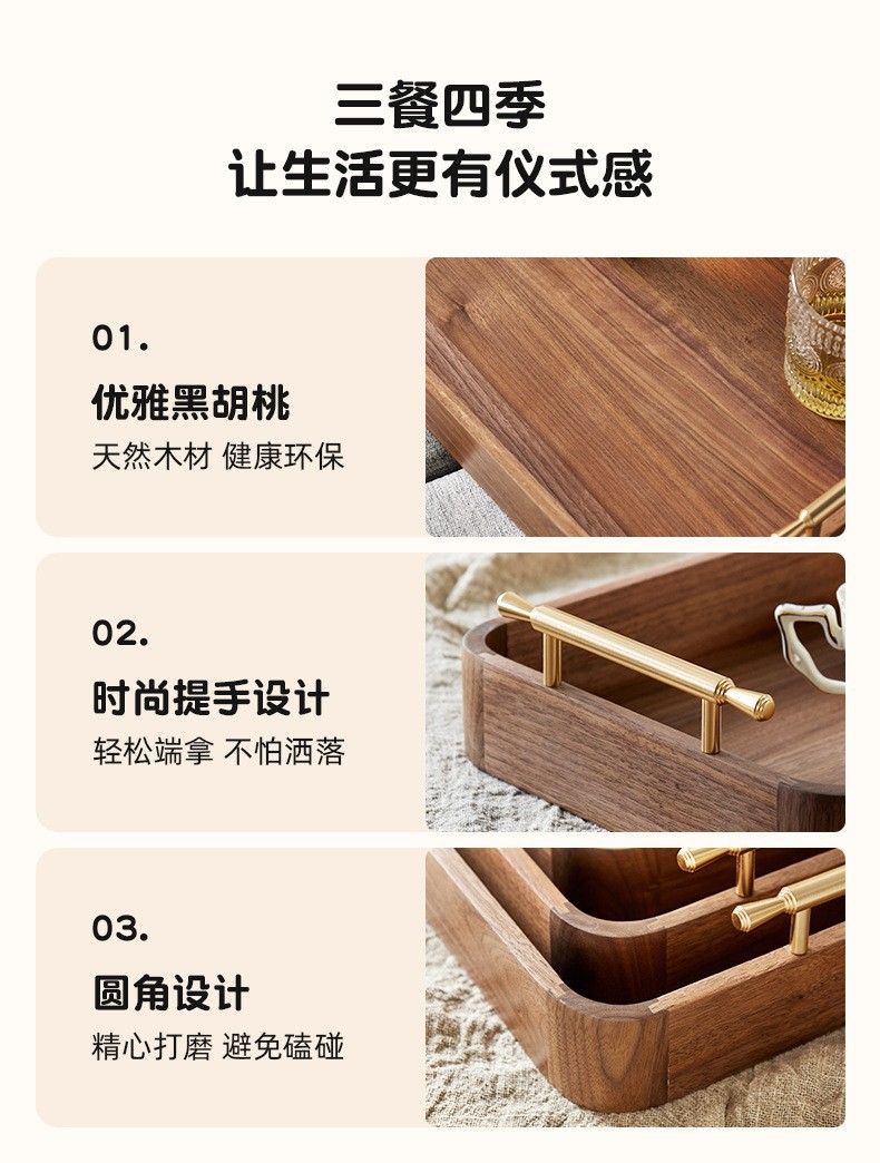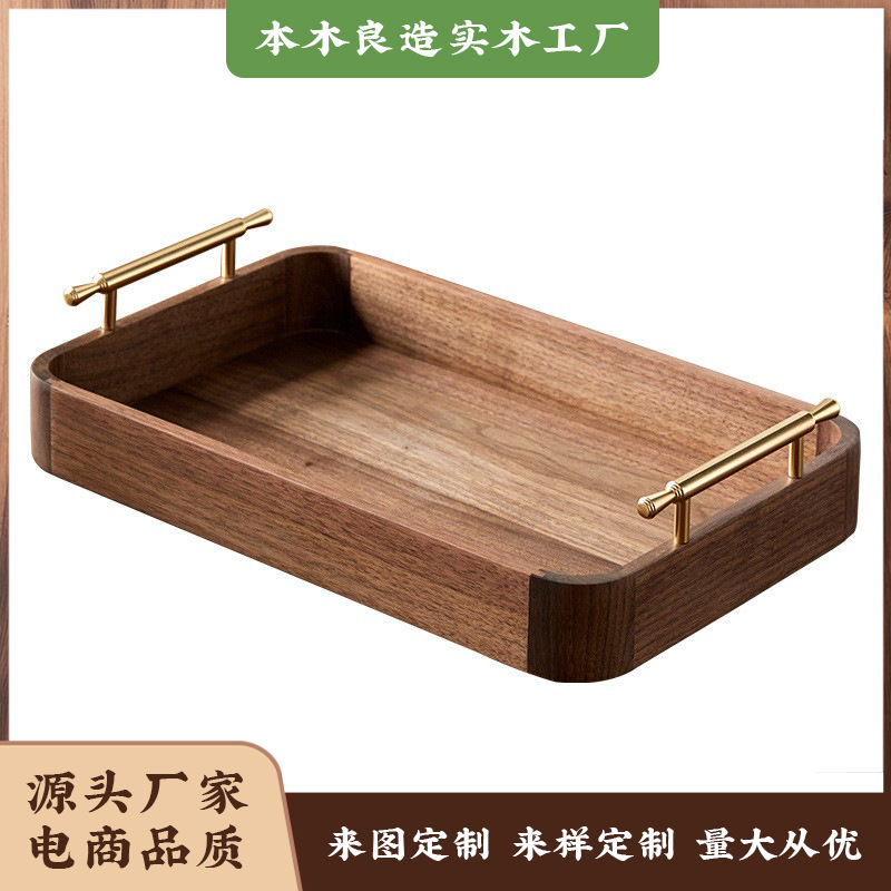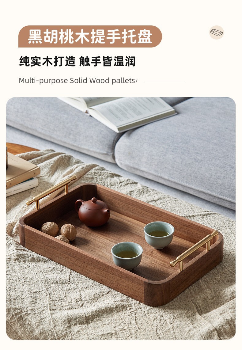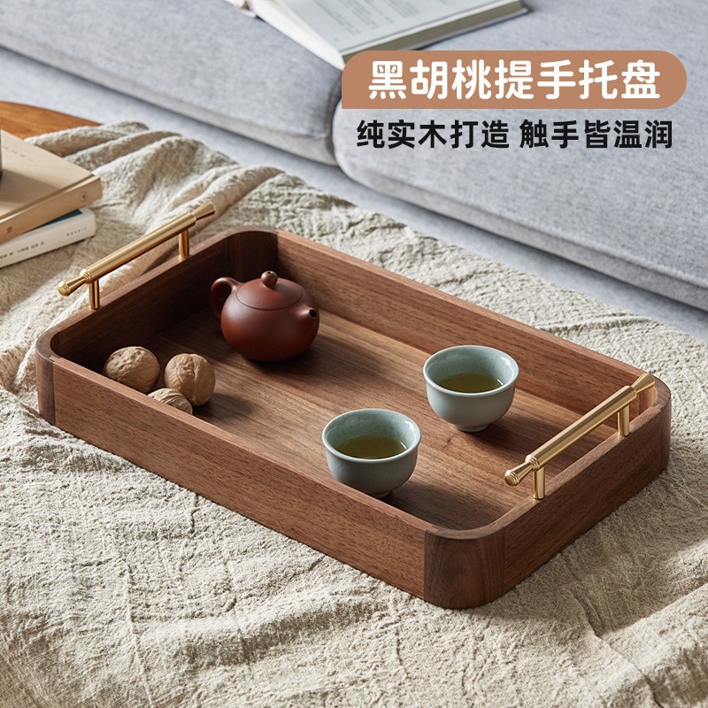 맞춤형 블랙 월넛 우드 티 트레이, 직사각형 수납 트레이, 스낵/케이크 접시, 티컵 트레이, 제조업체에서 공급하는 식기류스토어 가기