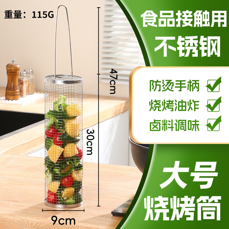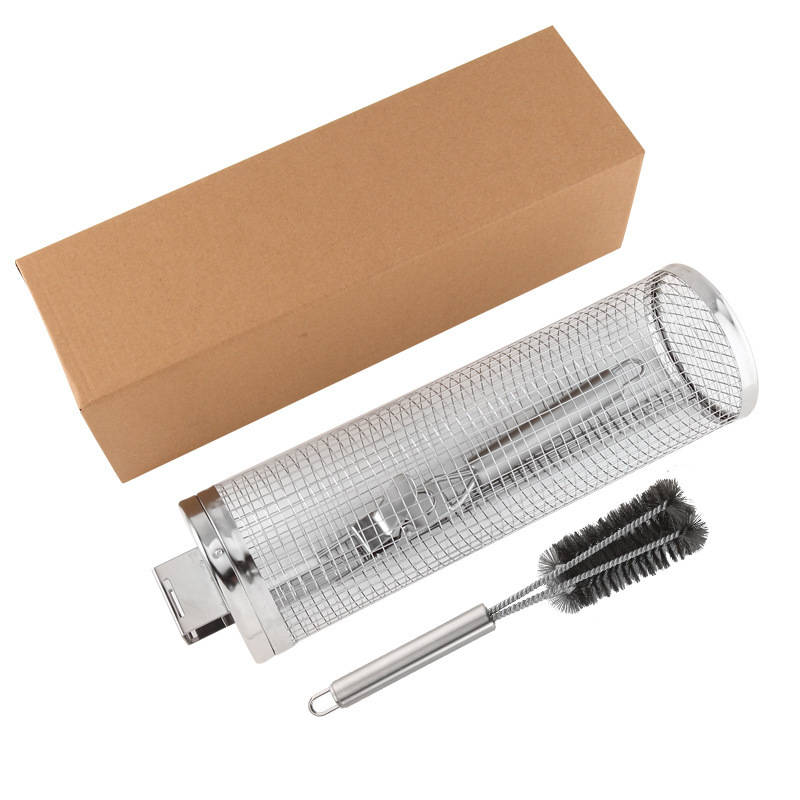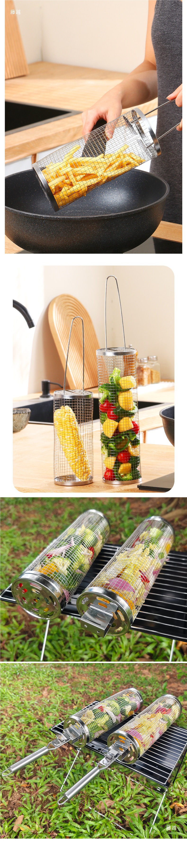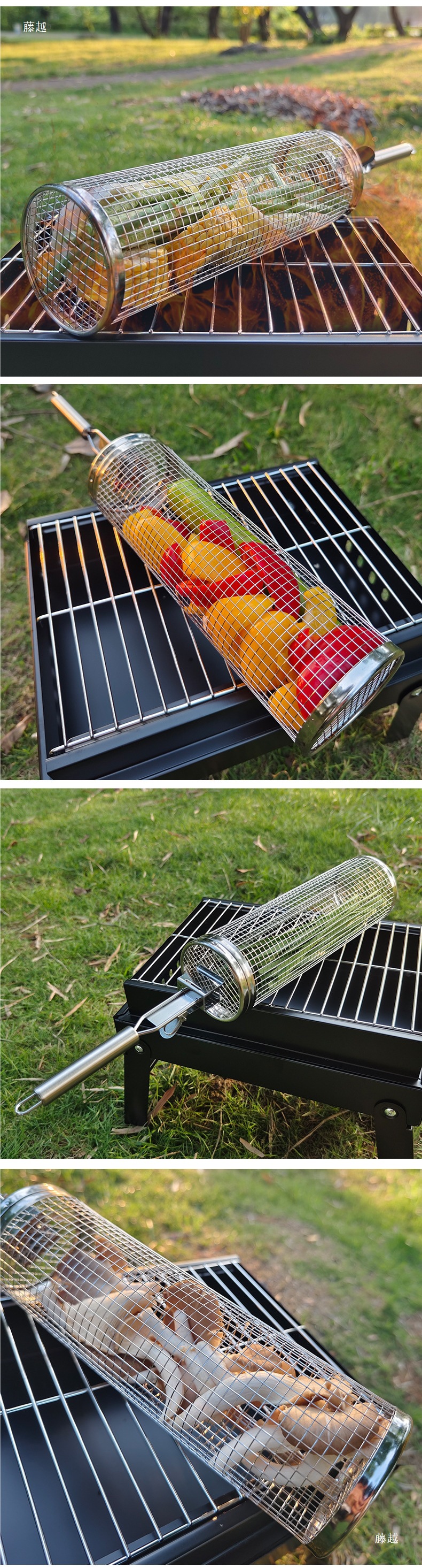 바베큐 스테인레스 스틸 롤링 메쉬 바베큐 라운드 연기 배럴 그릴 그릴 바구니 야외 케이지 스토브 도구 클래식 바베큐스토어 가기
