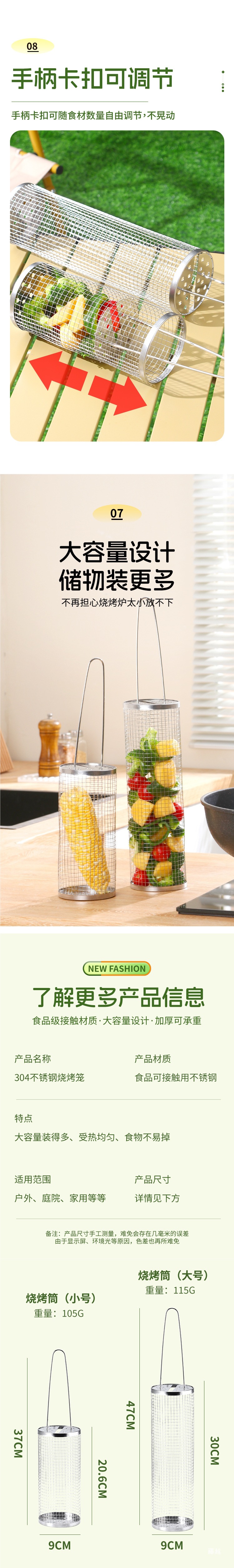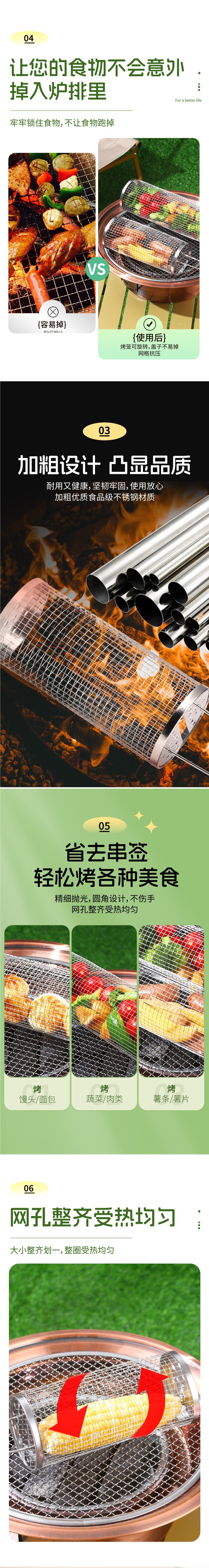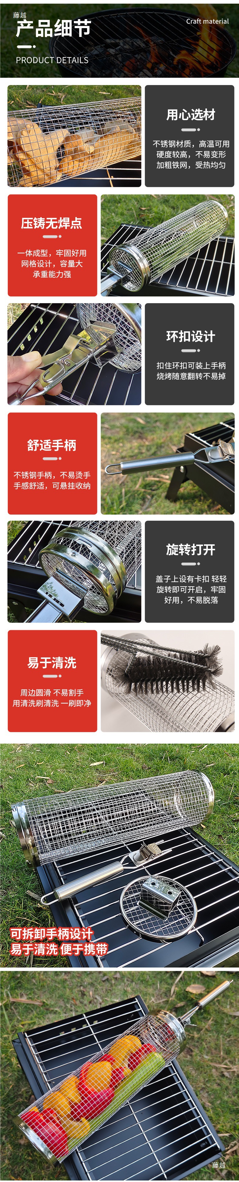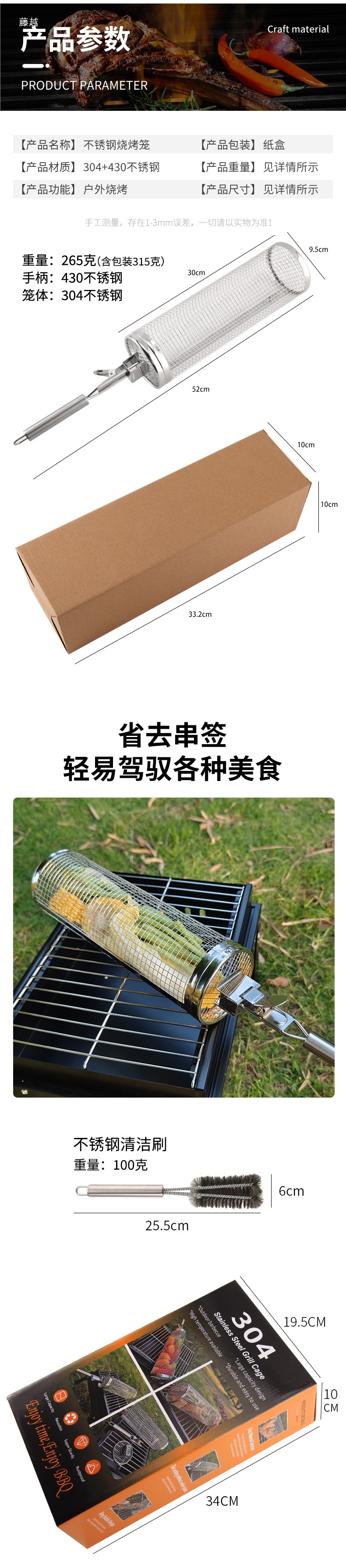 바베큐 스테인레스 스틸 롤링 메쉬 바베큐 라운드 연기 배럴 그릴 그릴 바구니 야외 케이지 스토브 도구 클래식 바베큐스토어 가기