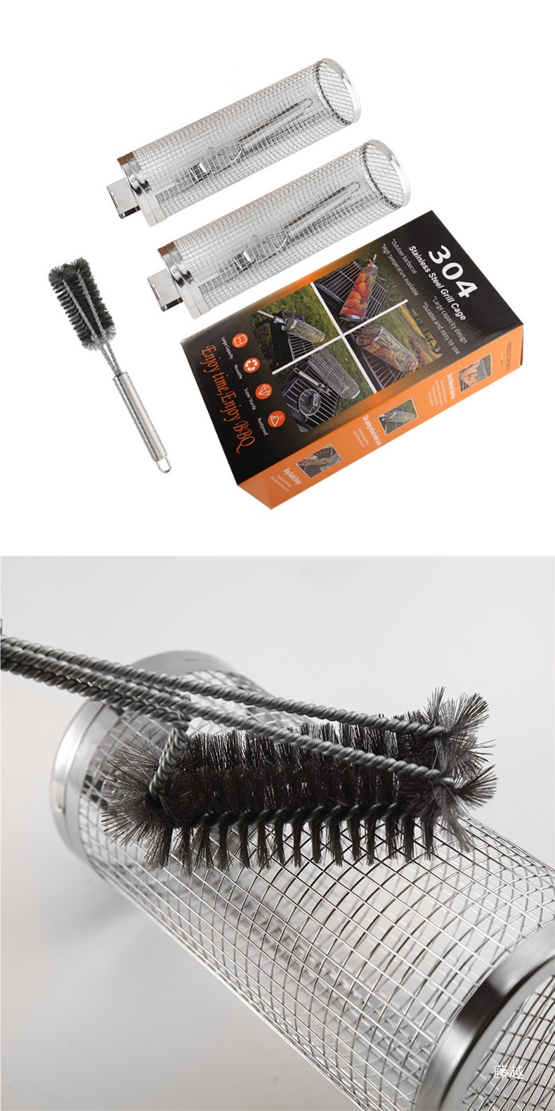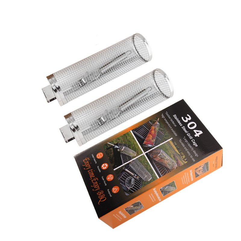 바베큐 스테인레스 스틸 롤링 메쉬 바베큐 라운드 연기 배럴 그릴 그릴 바구니 야외 케이지 스토브 도구 클래식 바베큐