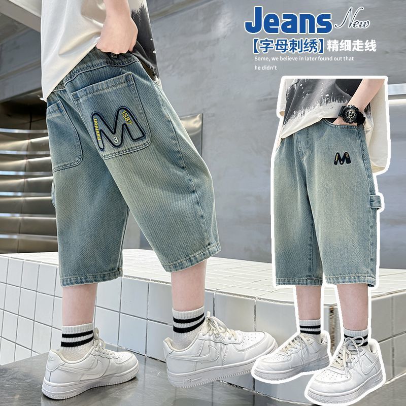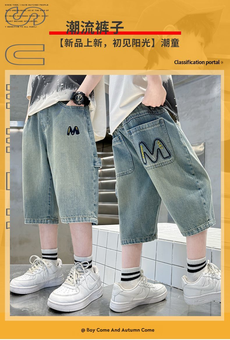 아동복 소년 여름 바지 여름 얇은 중대형 어린이 데님 반바지 2025 새로운 여름 소년 중간 바지스토어 가기