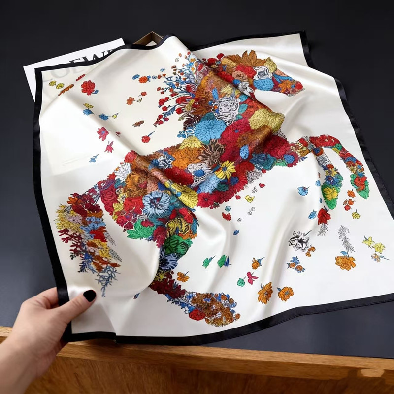 작은 사각형 스카프, 얇은 모조 실크 스카프, 여성용 봄 여름 다용도 전문 의류 액세서리, 스카프, 기질 실크 스카프, 머리띠스토어 가기