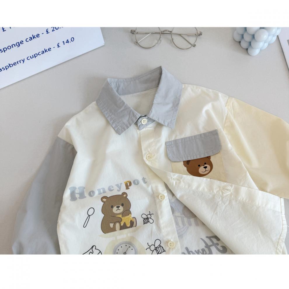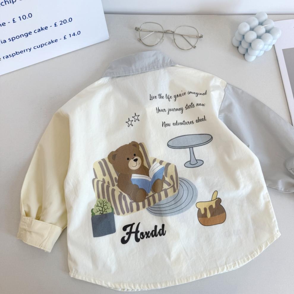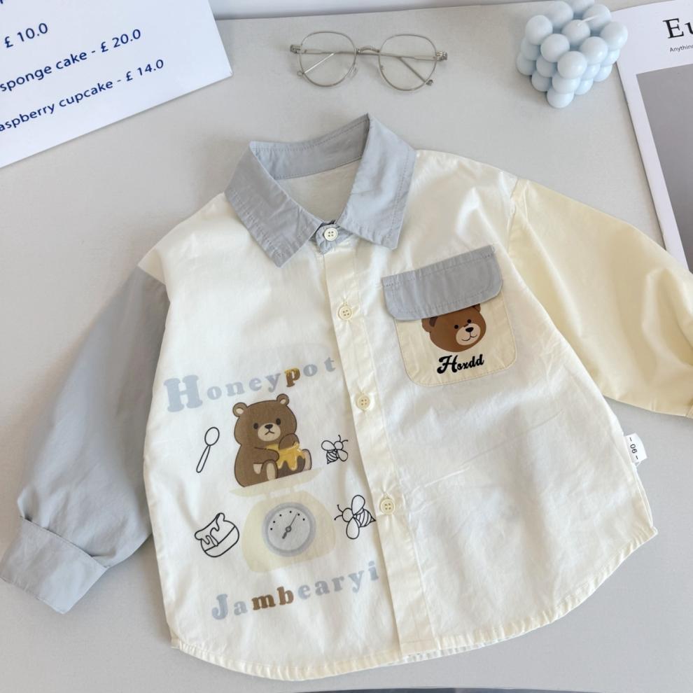 아동용 서양식 셔츠 ~ 봄 신작 귀여운 컬러 블록 탑 소년 아기 만화 한국식 캐주얼 셔츠 유행스토어 가기