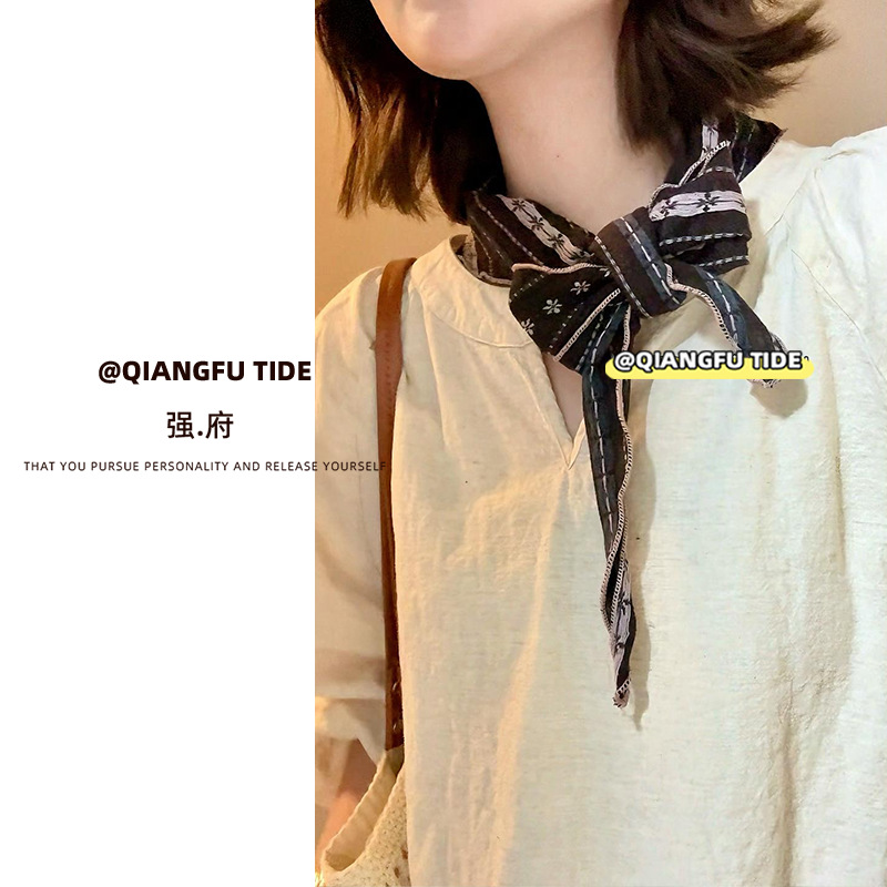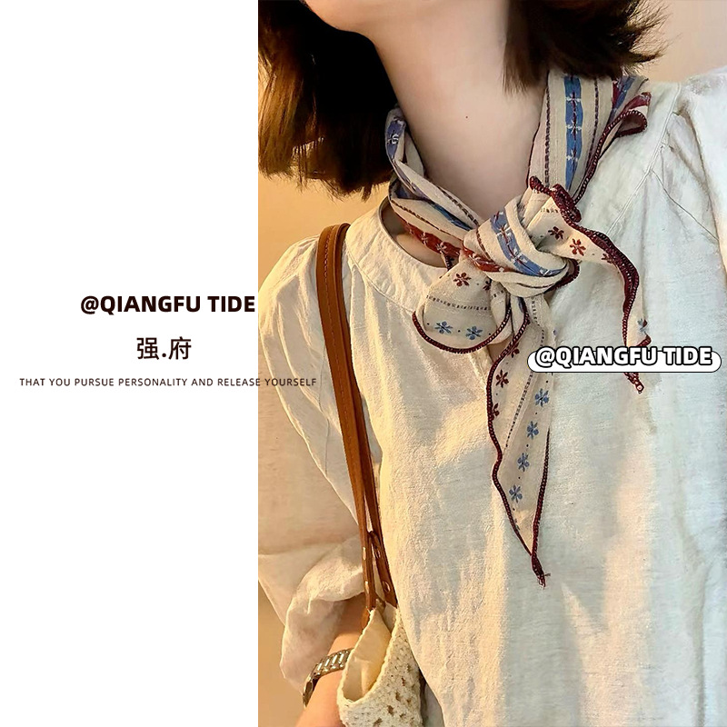 레트로 문학 면 및 린넨 실크 스카프, 다용도 스카프, 봄 여름 목 보호대, 장식용 삼각 스카프, 스카프, 여성용 일본식 및 한국식 스카프