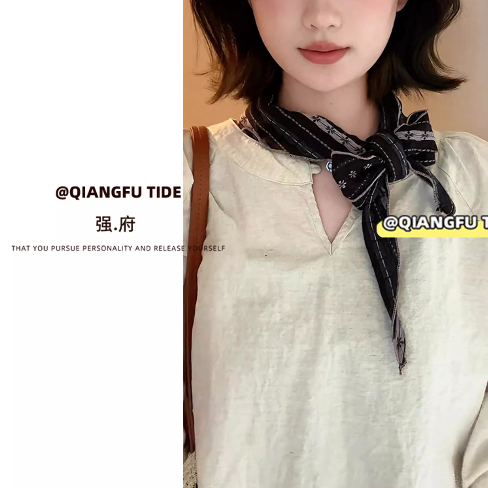• 【검은색】#F 빈티지 실크 스카프
