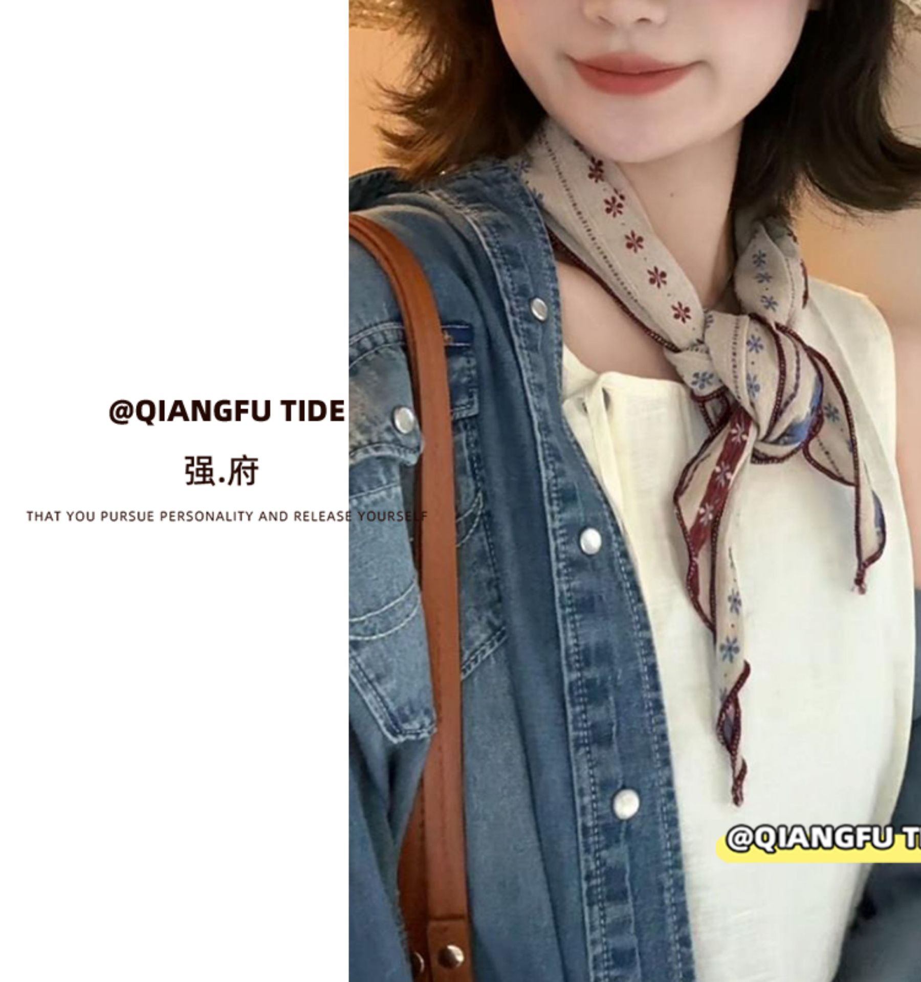 • 【카키색】#F 빈티지 실크 스카프