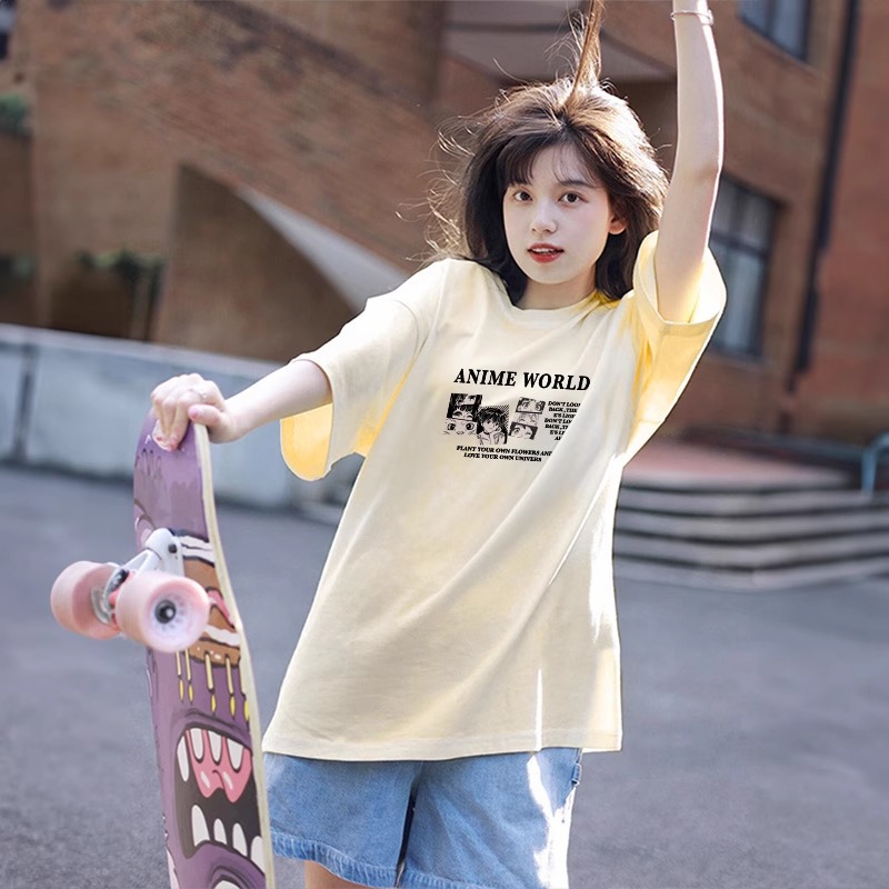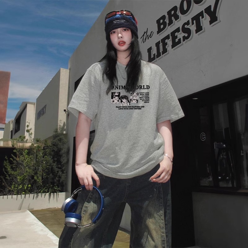 여름 달콤하고 시원한 스타일의 여성용 검은색 반팔 티셔츠 2025 새로운 루즈하고 충돌하지 않는 순면 디자인 탑스토어 가기