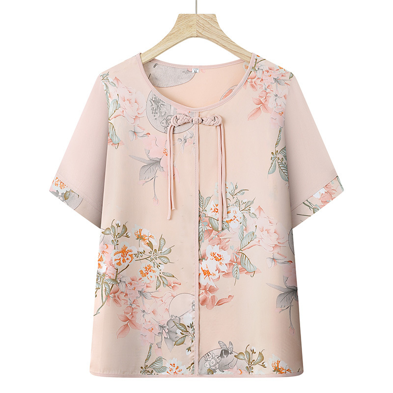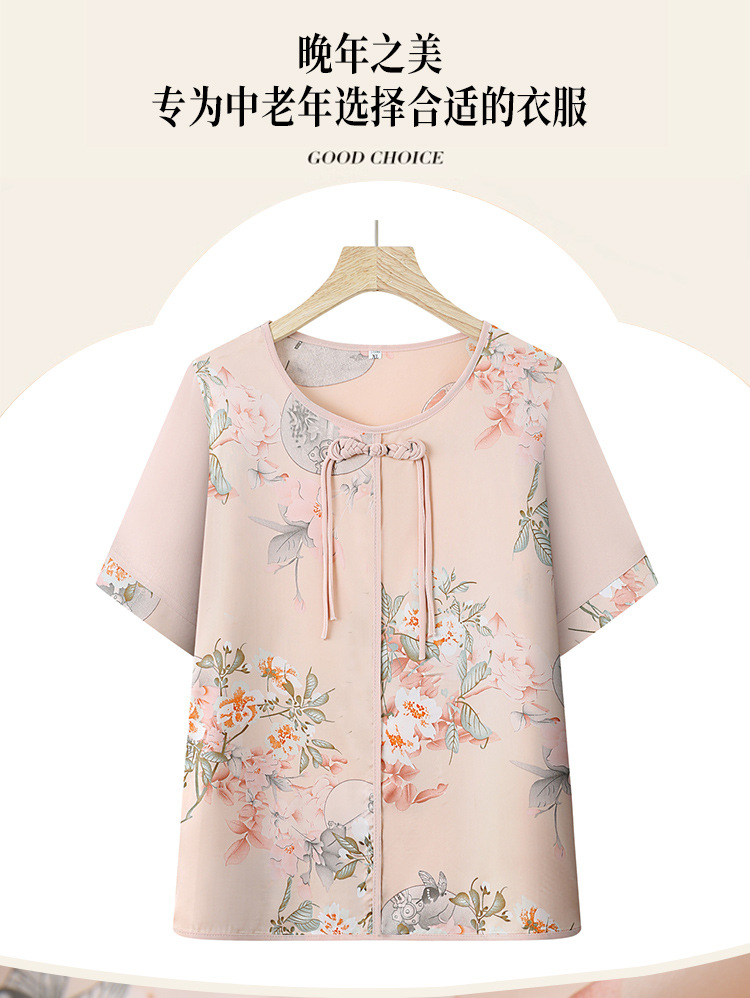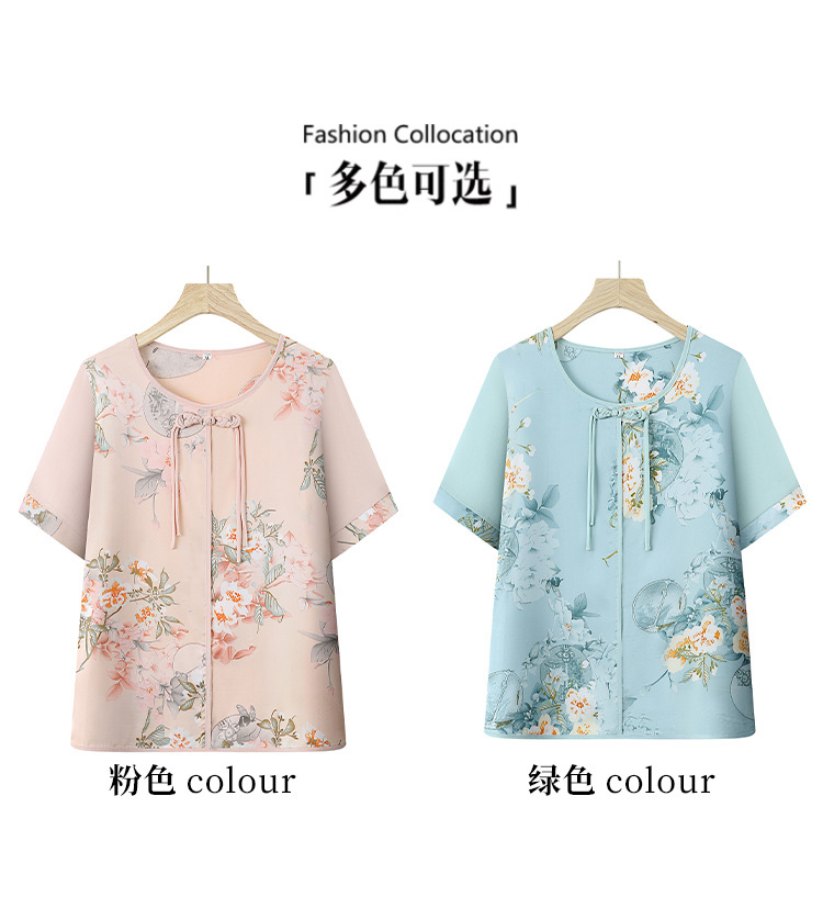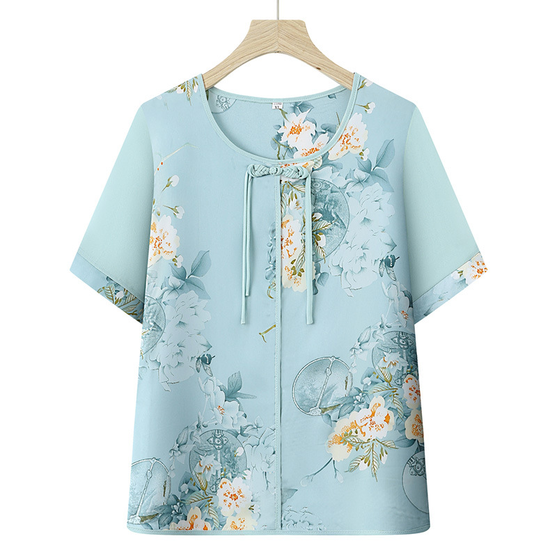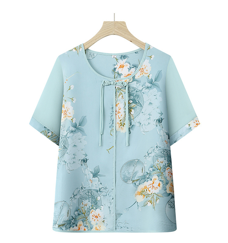 여성을위한 새로운 중국 스타일 7부 소매 쉬폰 셔츠 여름 새로운 기질 허리 셔츠 어머니의 서양식 중국 스타일 탑