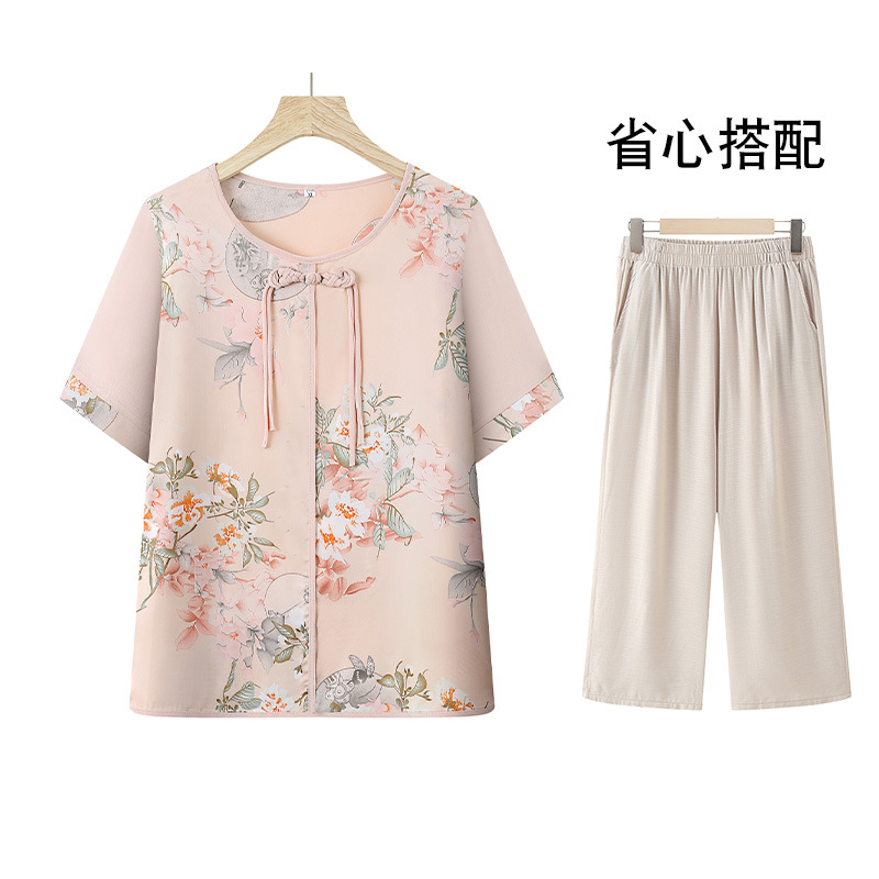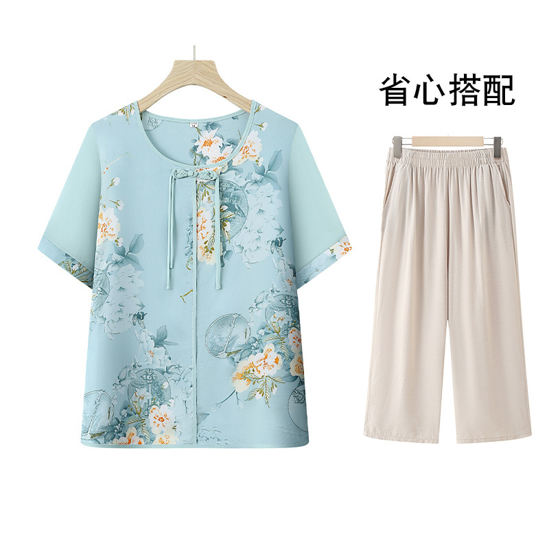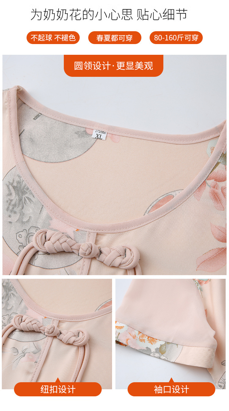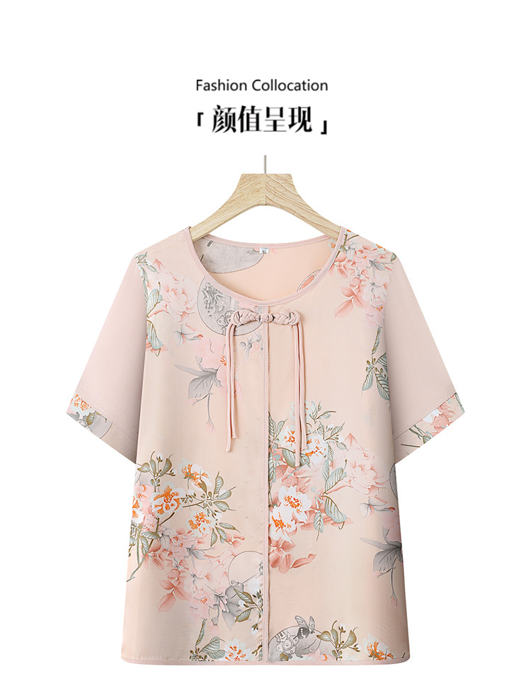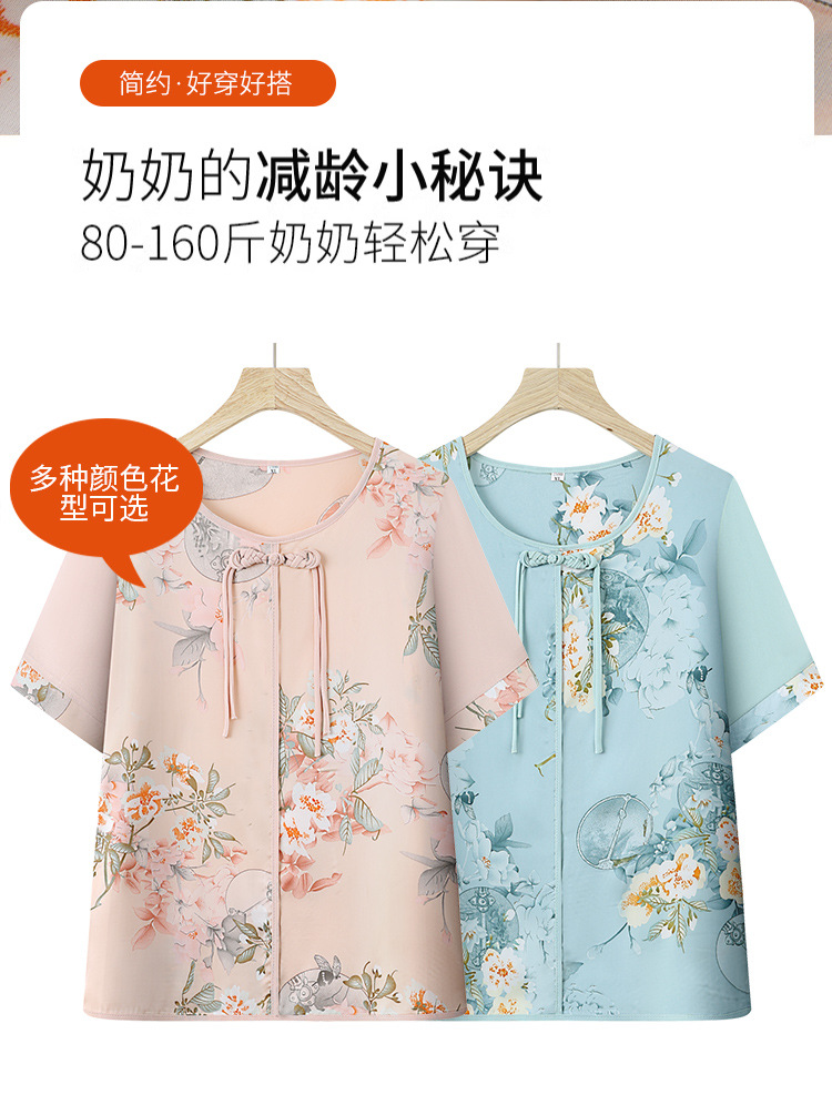 여성을위한 새로운 중국 스타일 7부 소매 쉬폰 셔츠 여름 새로운 기질 허리 셔츠 어머니의 서양식 중국 스타일 탑