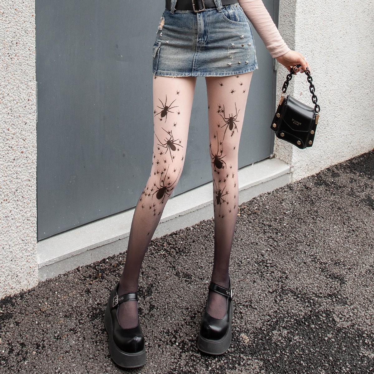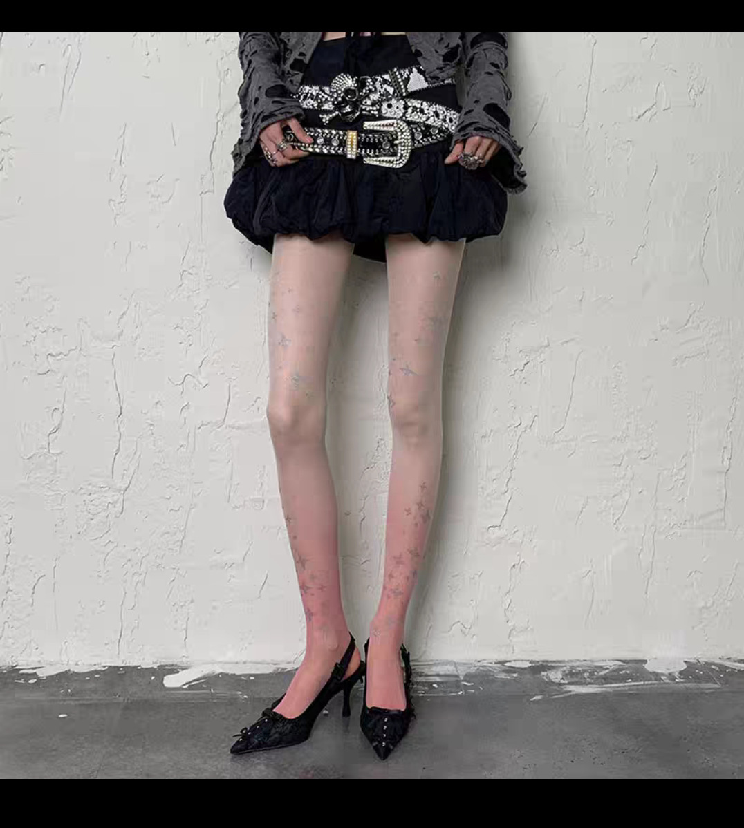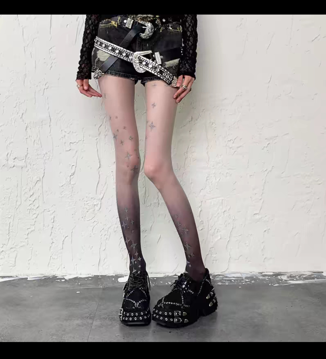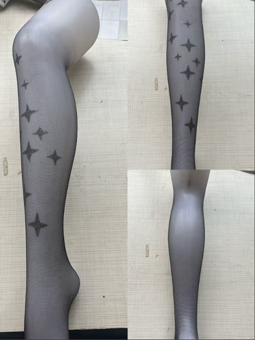 그라디언트 실버 스타 프린트 스타킹 섹시한 블랙 스타킹 로리타 달콤한 매운 여름 얇은 스타킹 여성용스토어 가기