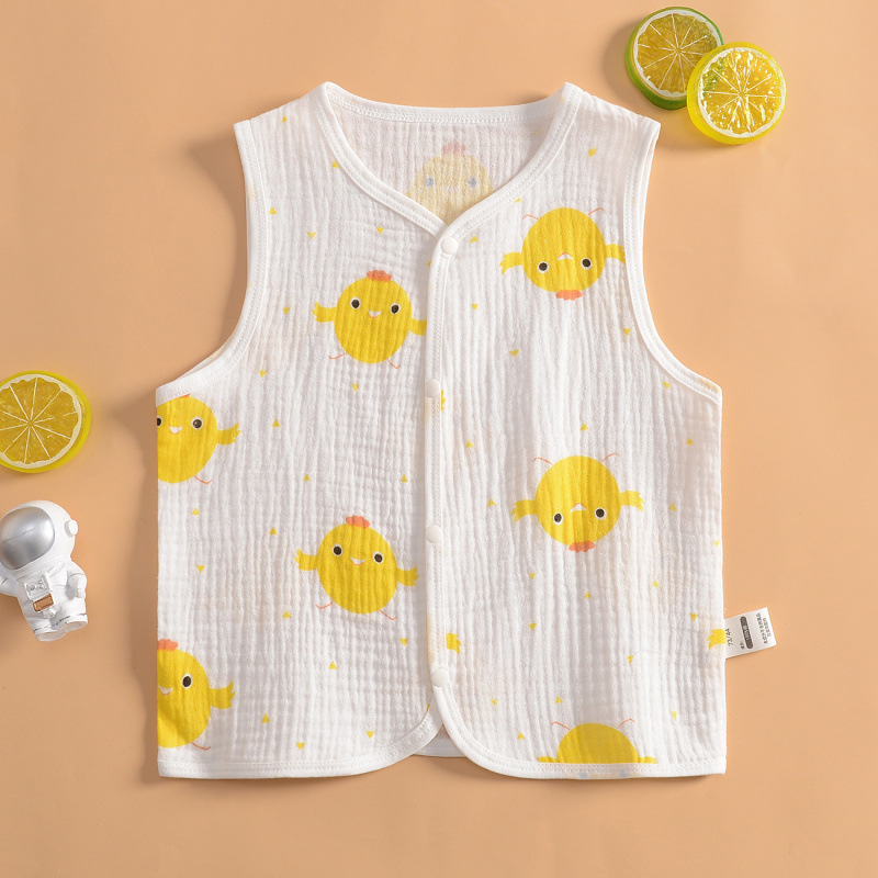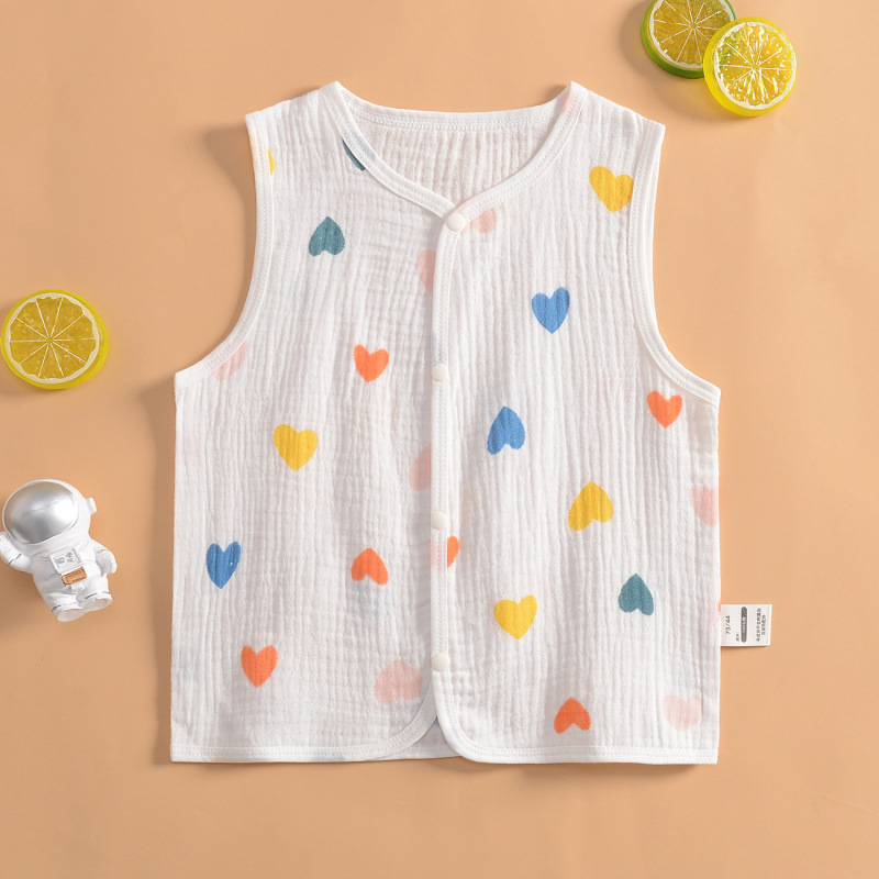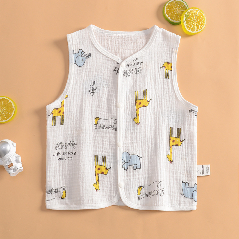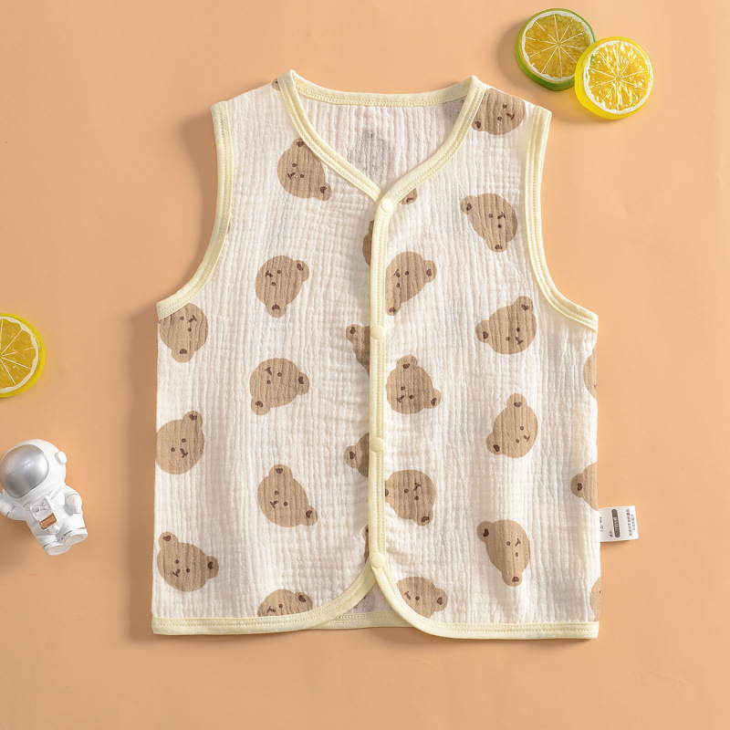 여름 소년 거즈 조끼 코트 아기 순수 코튼 초박형 조끼 소녀 땀 흡수 친밀한 카디건 조끼