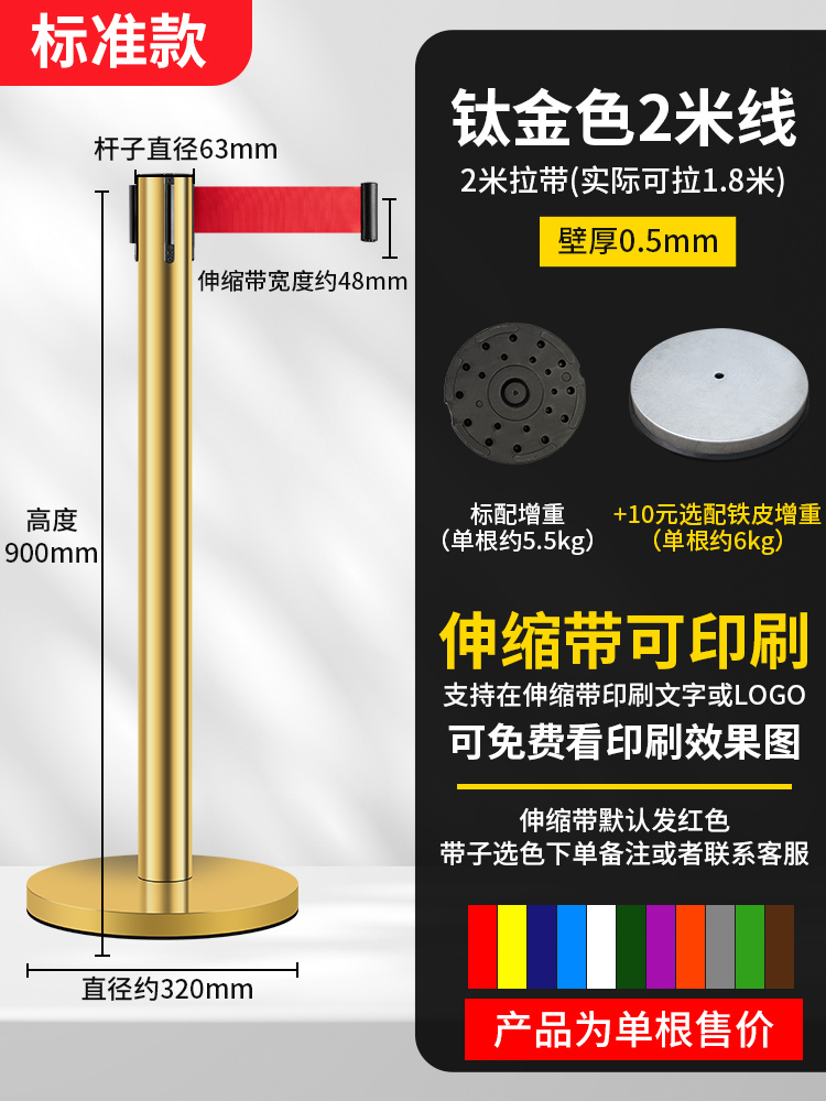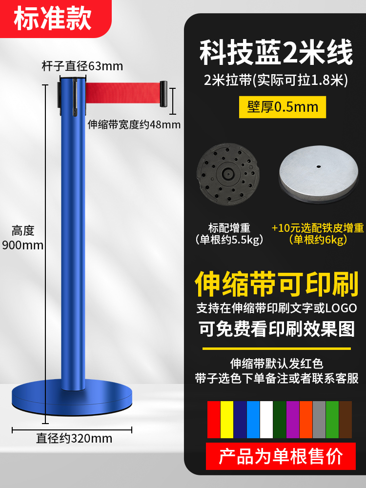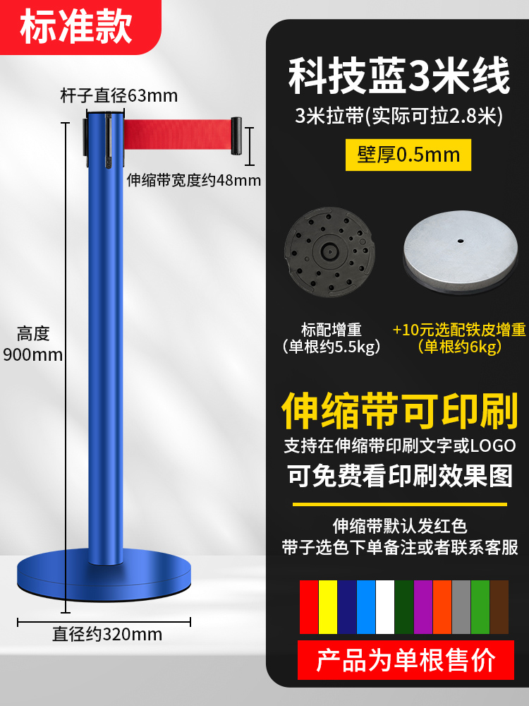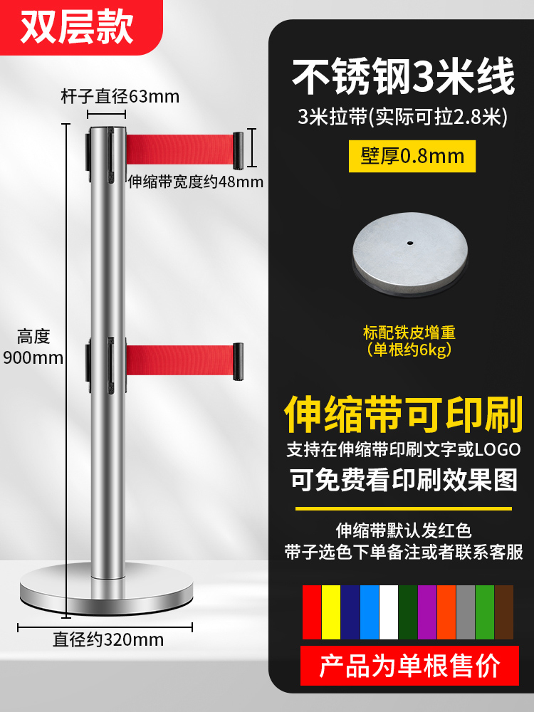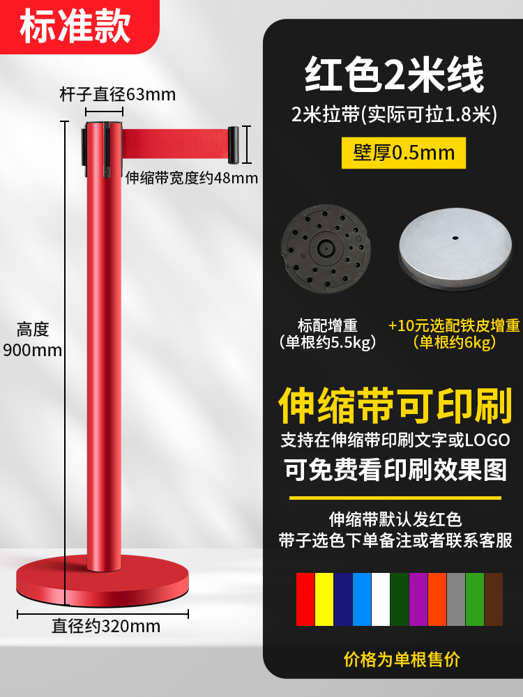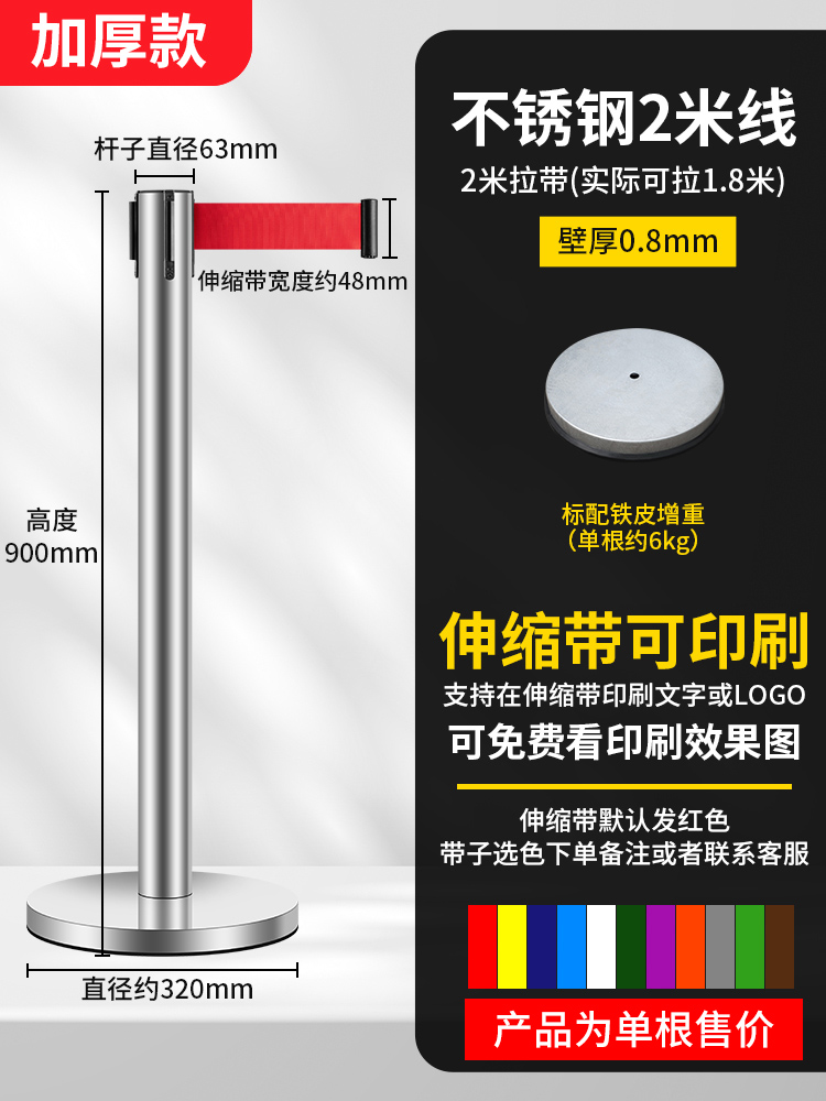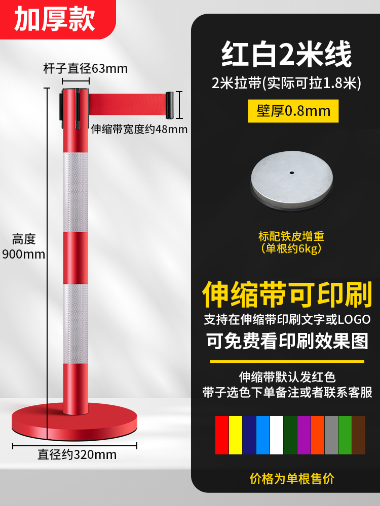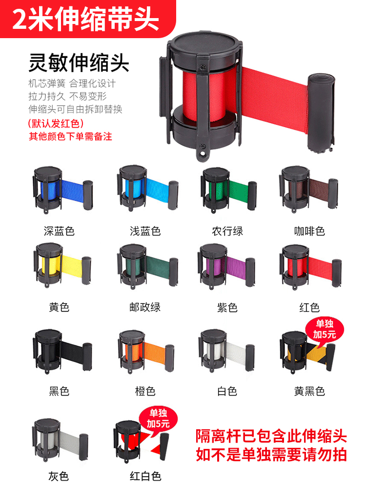 격리 벨트 텔레스코픽 벨트 1.0m 와이어 가드 레일 대기 레일 콘시어지 폴 뱅크 펜스 포스트 안전 경고 경고 기둥