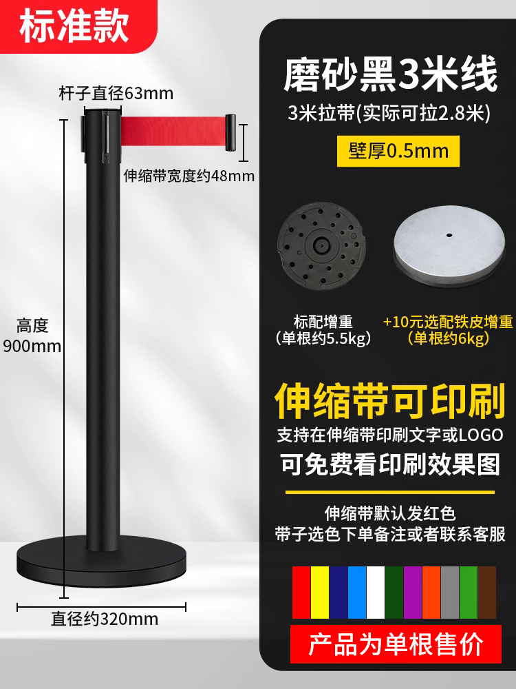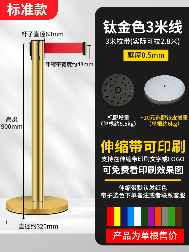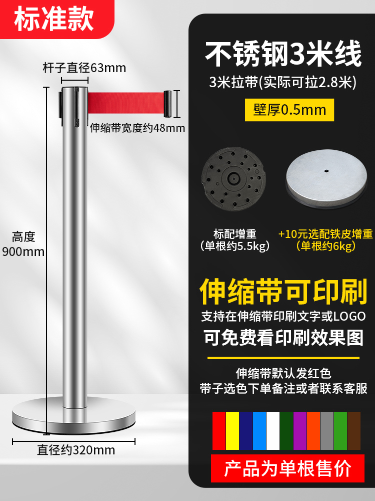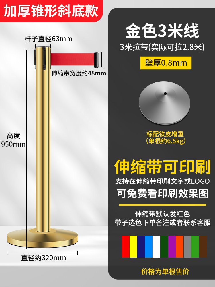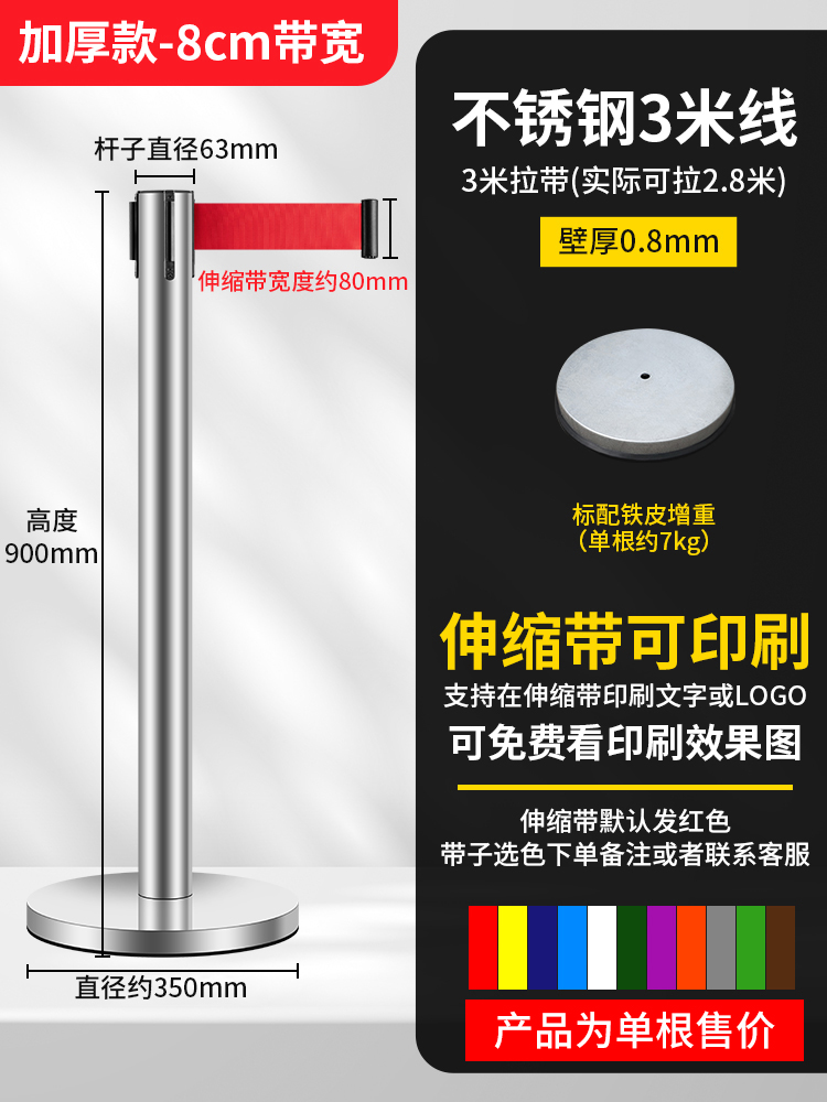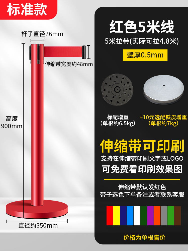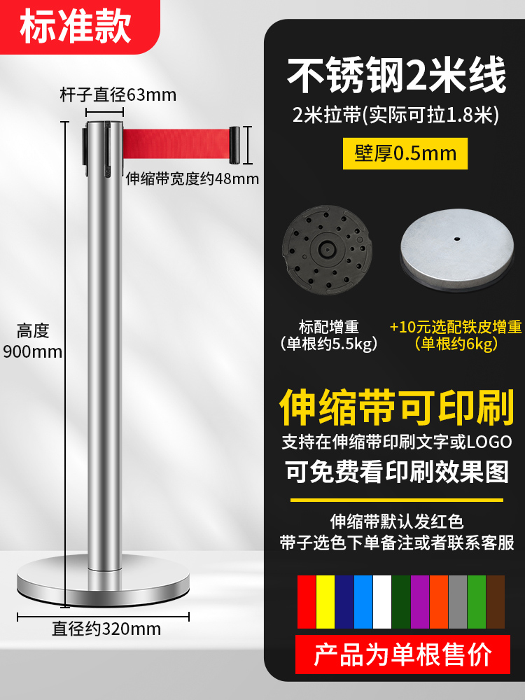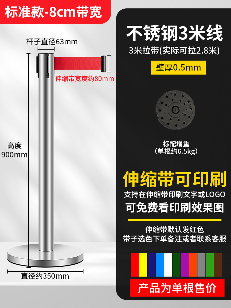 격리 벨트 텔레스코픽 벨트 1.0m 와이어 가드 레일 대기 레일 콘시어지 폴 뱅크 펜스 포스트 안전 경고 경고 기둥