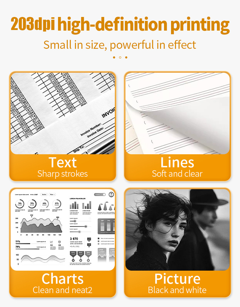 3·203dpi Resolution,Print clearly with Advanced thermal printing technology
