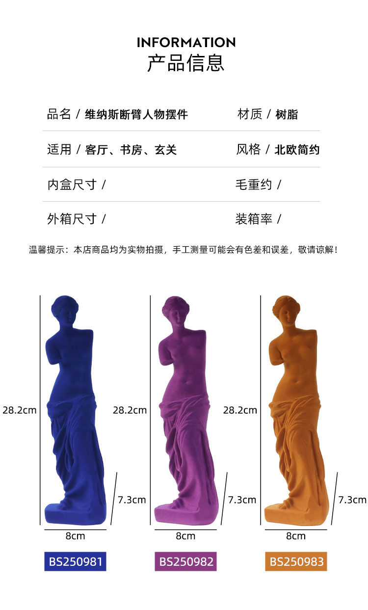 북유럽 가정용 가구 비너스 동상 플록 수지 공예 현관 거실 사무실 데스크탑 장식
