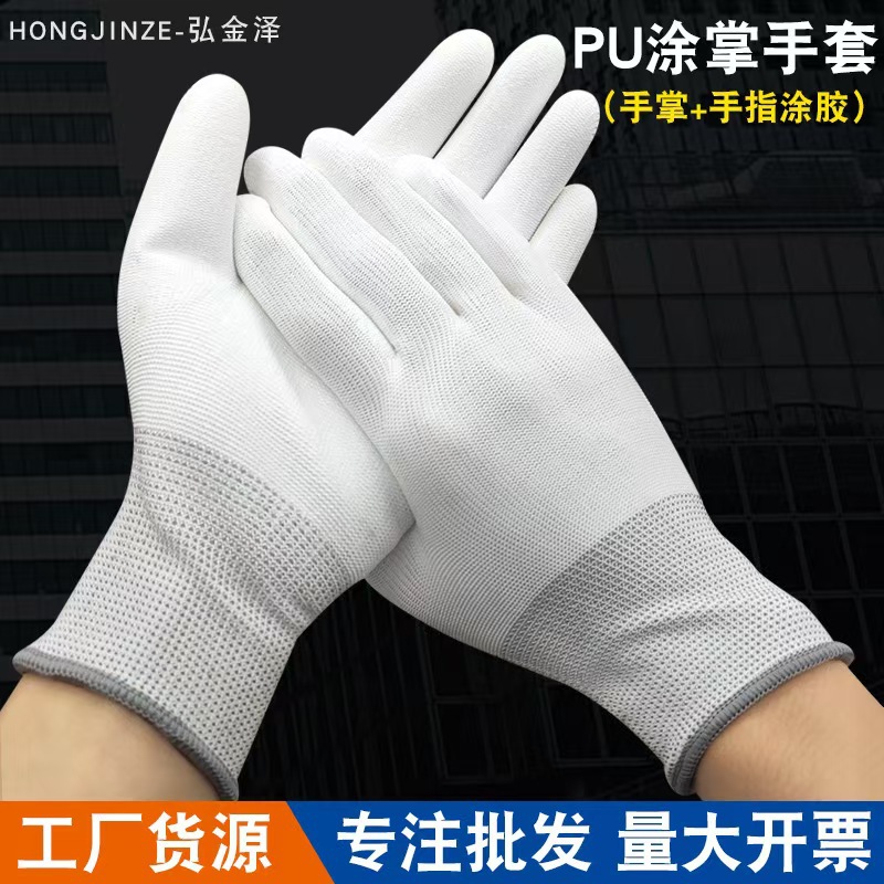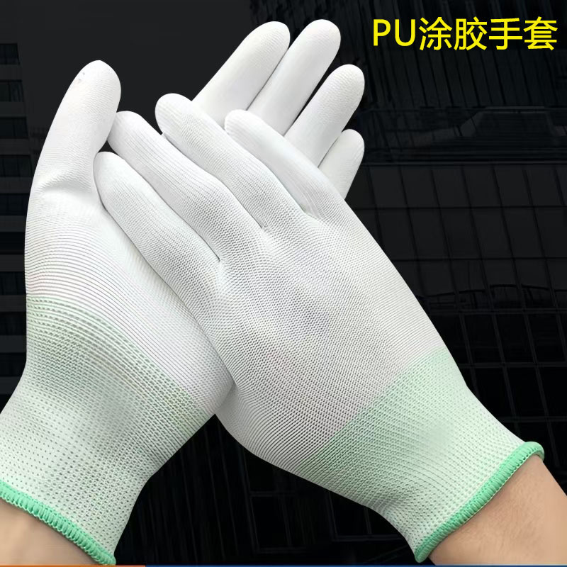 PU 코팅 손가락 코팅 손바닥 코팅 고무 장갑 흰색 정원 따기 작업 정전기 방지 장갑 13 바늘 나일론 코팅 장갑스토어 가기