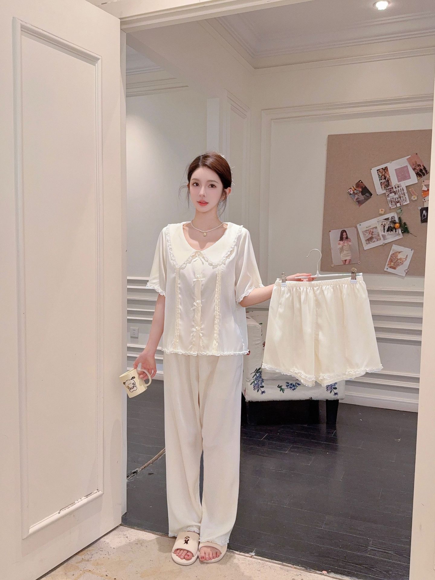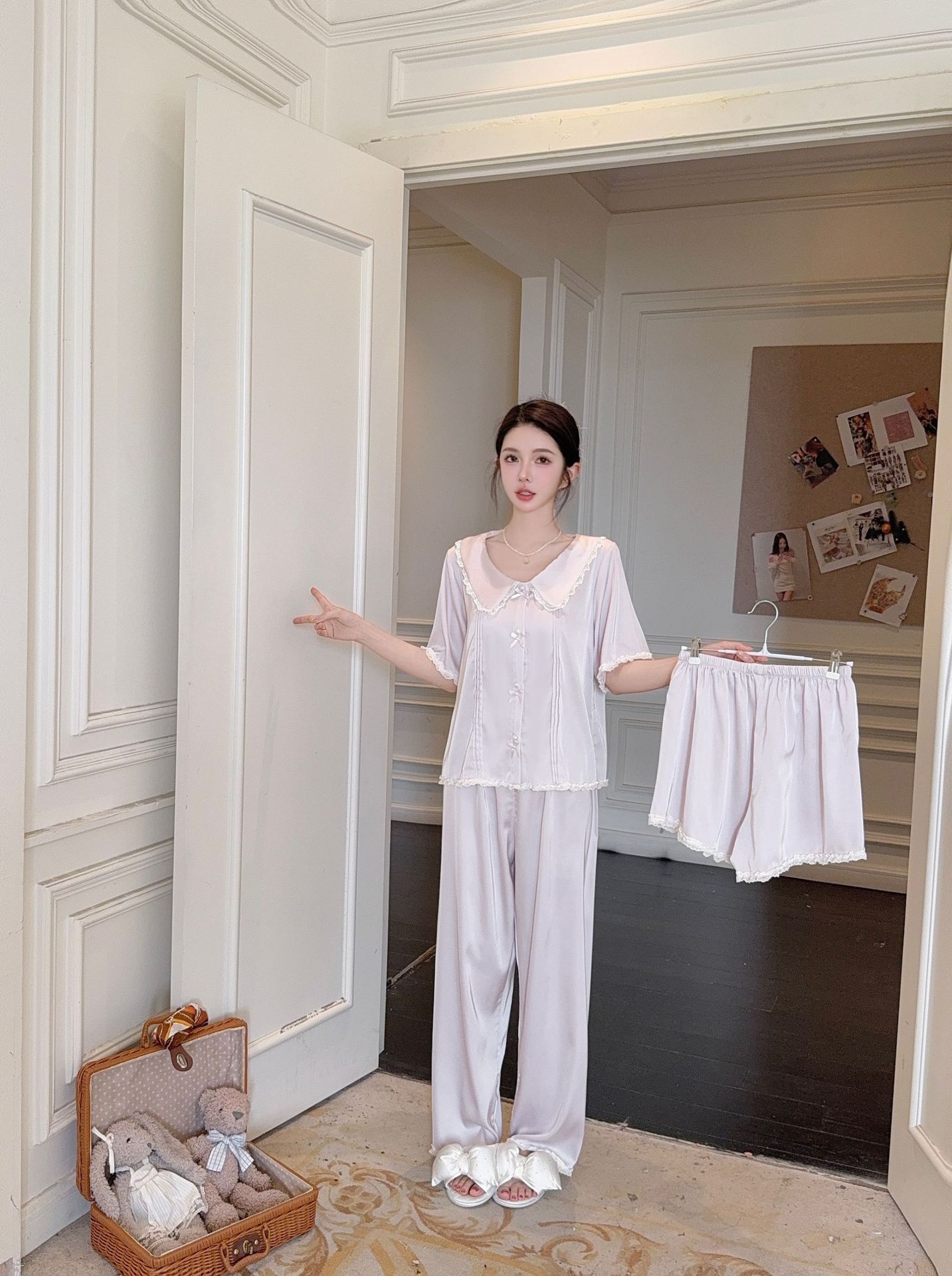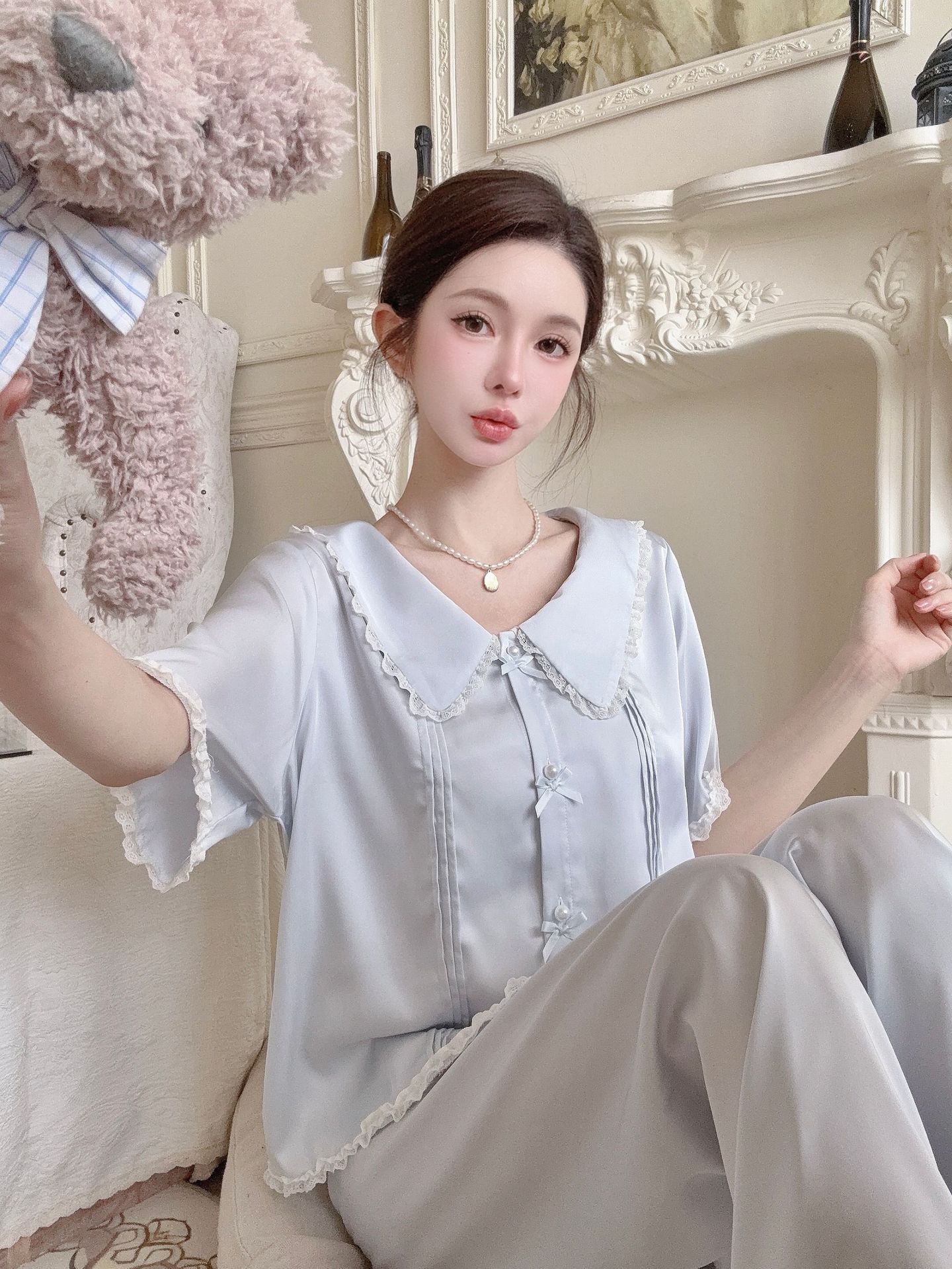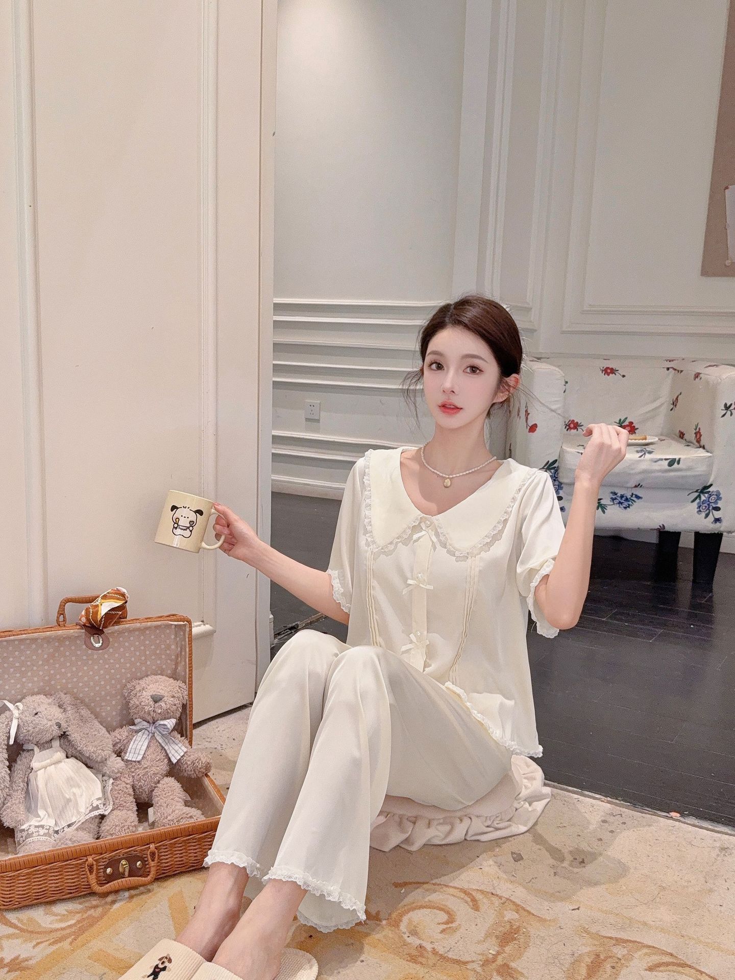 2025 새로운 잠옷 여성 여름 얼음 실크 반팔 바지 정장 독특하고 아름다운 한국 소녀 홈웨어스토어 가기