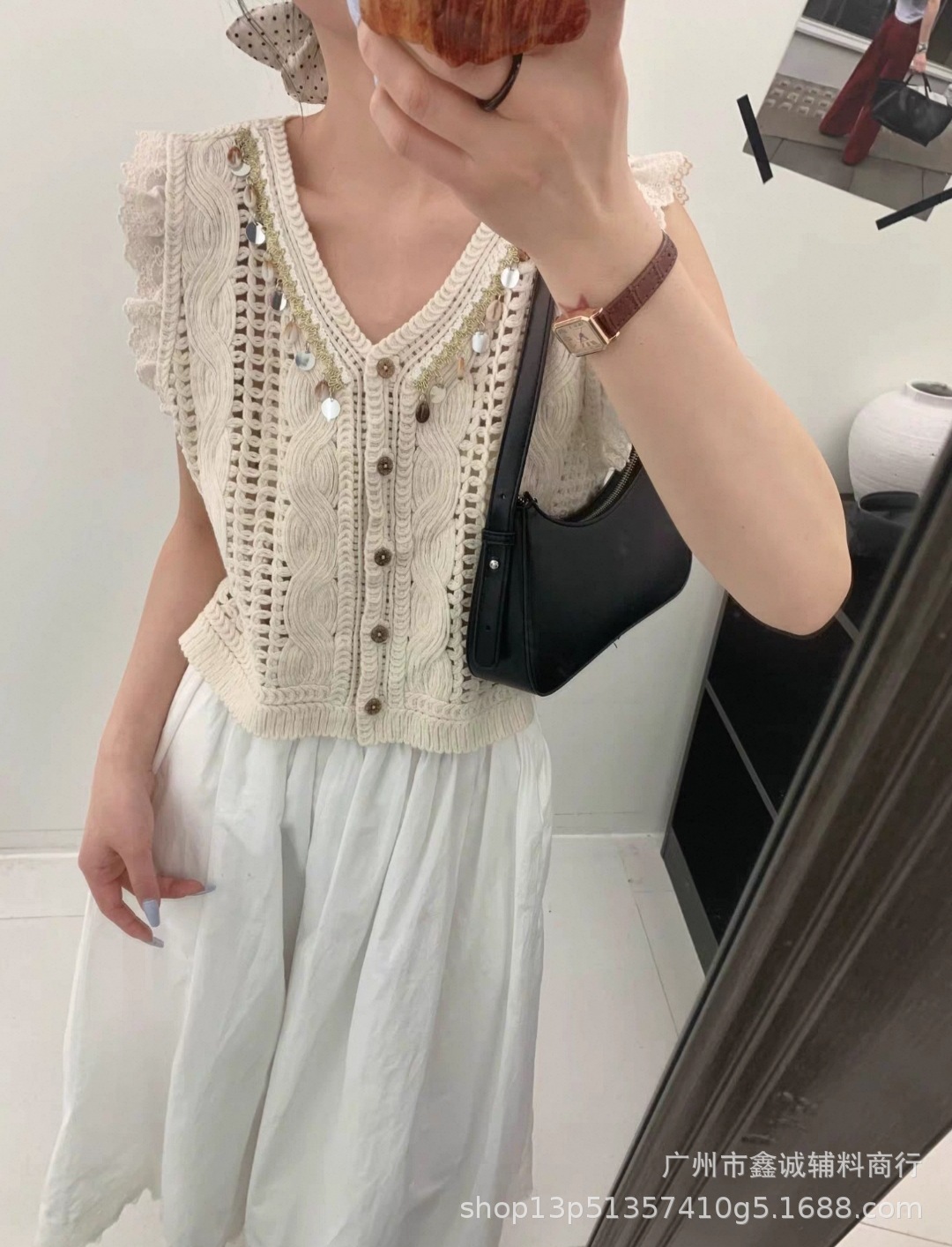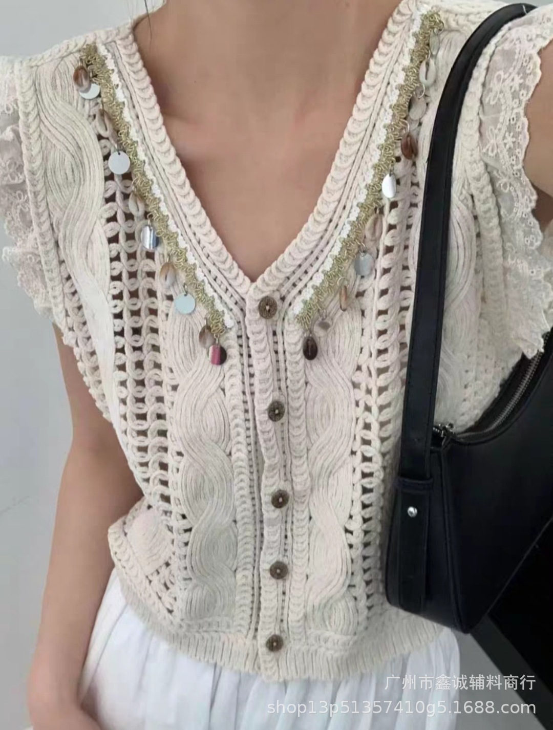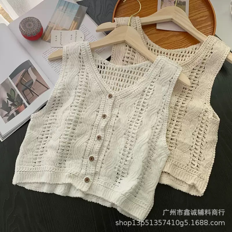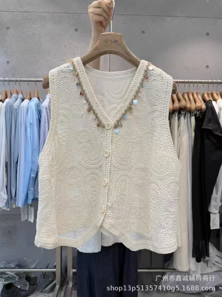 여성을위한 자수 니트 카디건 조끼 봄과 여름 새로운 핫 스타일 얇은 외부 조끼 디자인 중공 탑스토어 가기