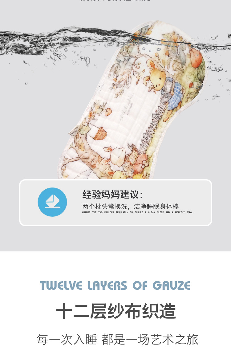 신생아 구름베개, 통기성 좋고 땀이 잘 안묻는 아기베개, 역류방지 베개커버, 0베개 높이, A급 거즈 아기베개스토어 가기