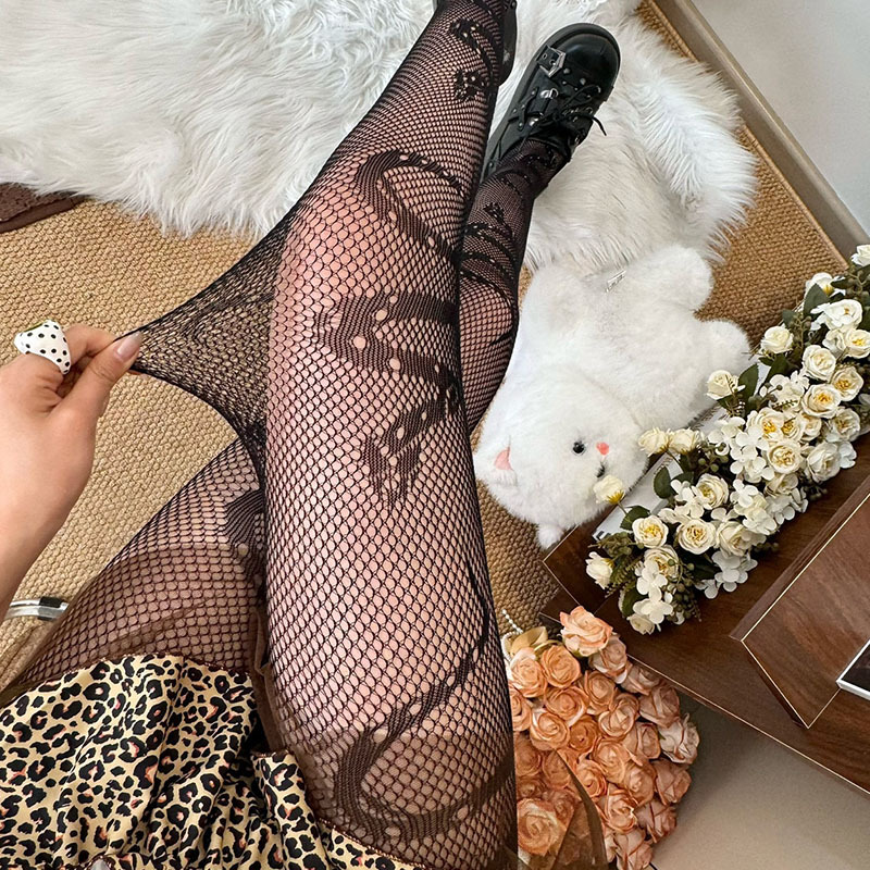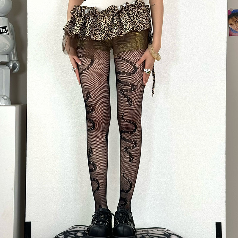 서브컬쳐 스네이크 메쉬 스타킹 펑크 메쉬 아비 스타킹 틈새 핫걸 밀레니얼 스타일 y2k 팬티 스타킹 여성용