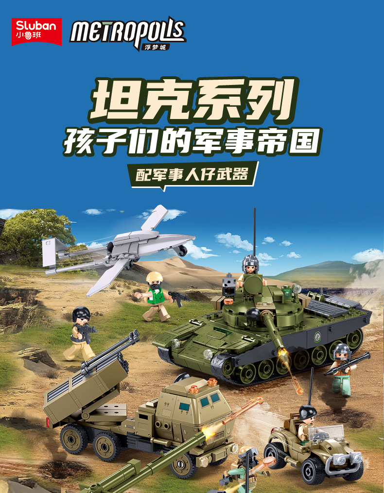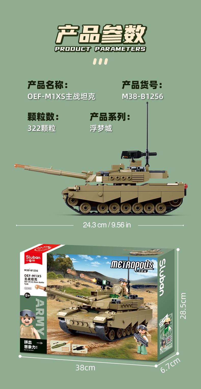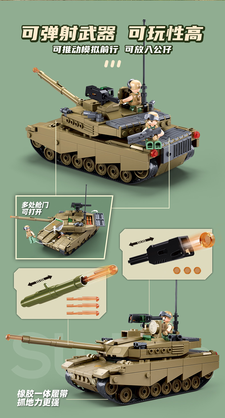 Little Luban B1256OEFM1XS 주력 전차 군사 모델 시리즈 교육 조립 빌딩 블록 장난감 크로스 보더 남성스토어 가기