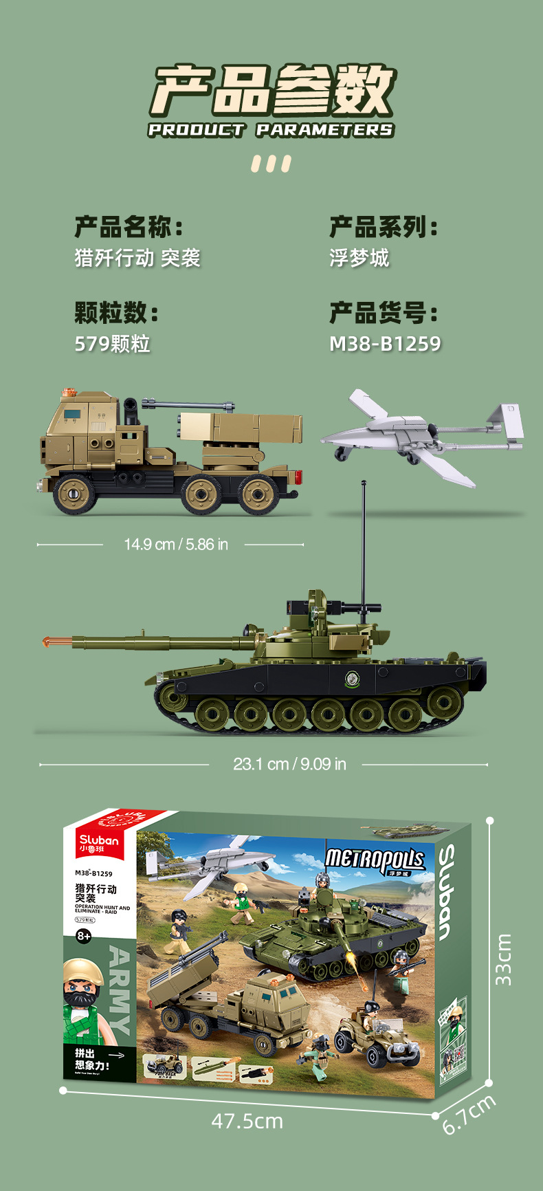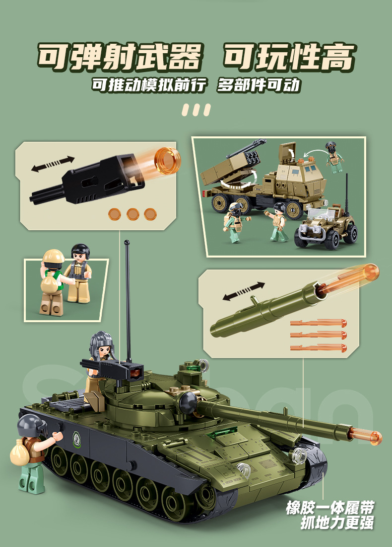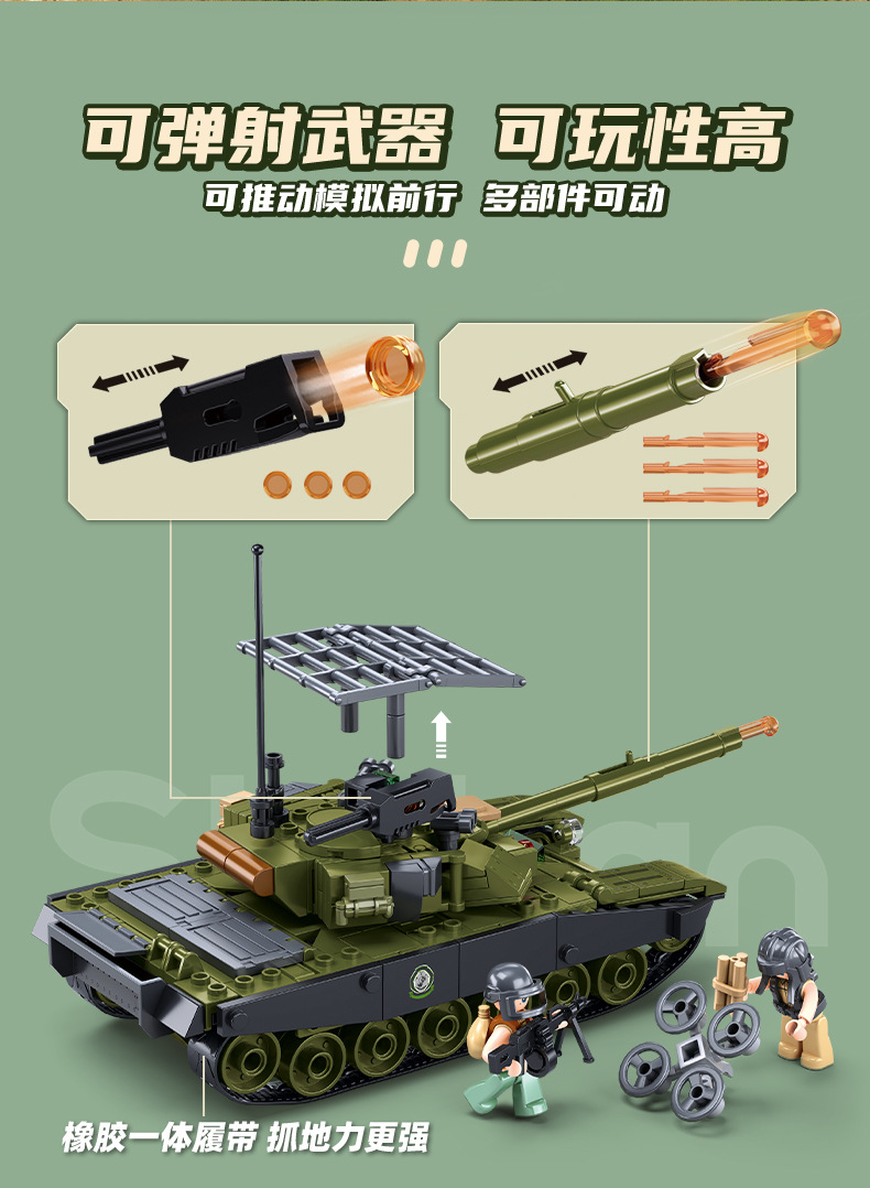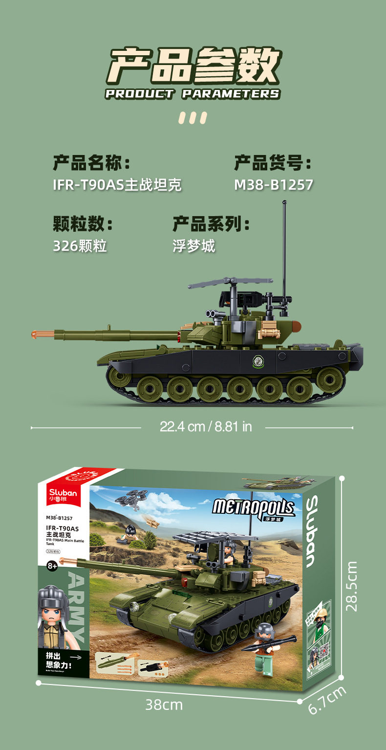 Little Luban B1256OEFM1XS 주력 전차 군사 모델 시리즈 교육 조립 빌딩 블록 장난감 크로스 보더 남성스토어 가기