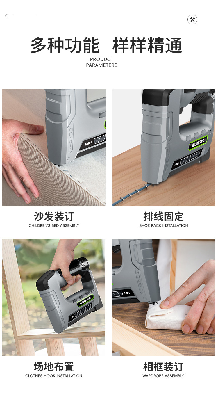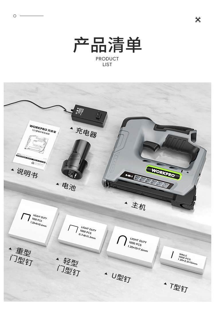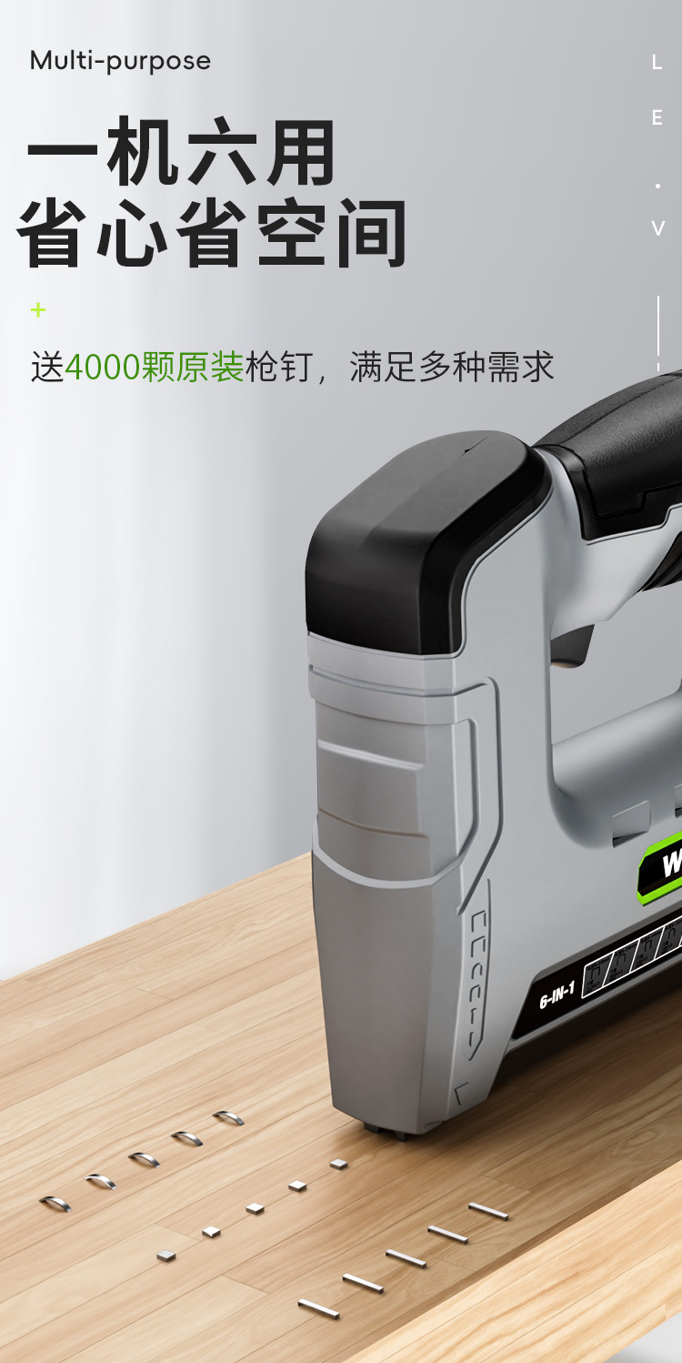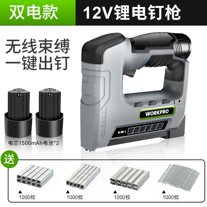 • 12V 강력한 전력 + [6-in-1 듀얼 배터리] + 못 4000개