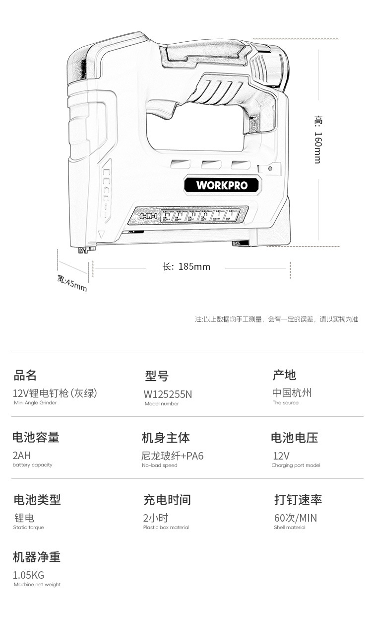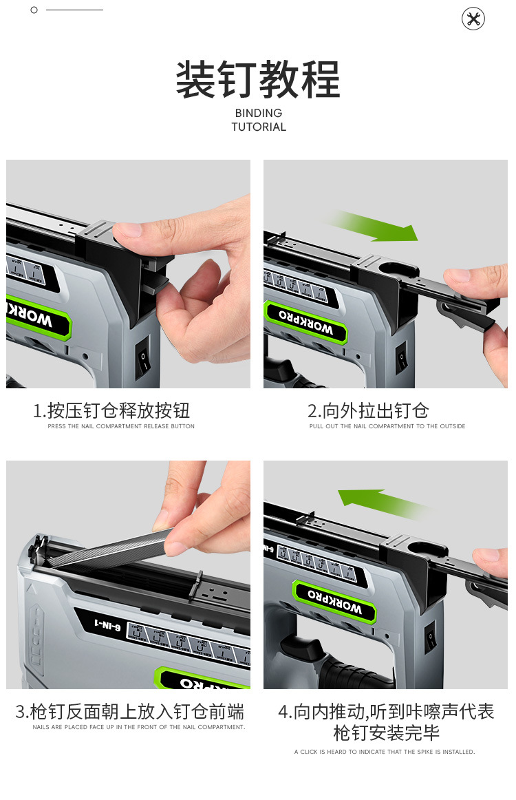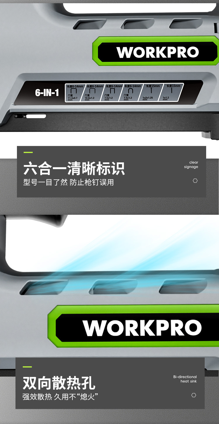 • 12V 강력한 전력 + [6-in-1 듀얼 배터리] + 못 4000개