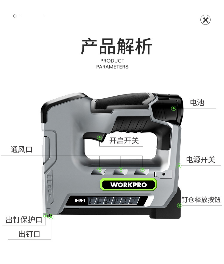 • 12V 강력한 전력 + [6-in-1 단일 배터리] + 못 4000개