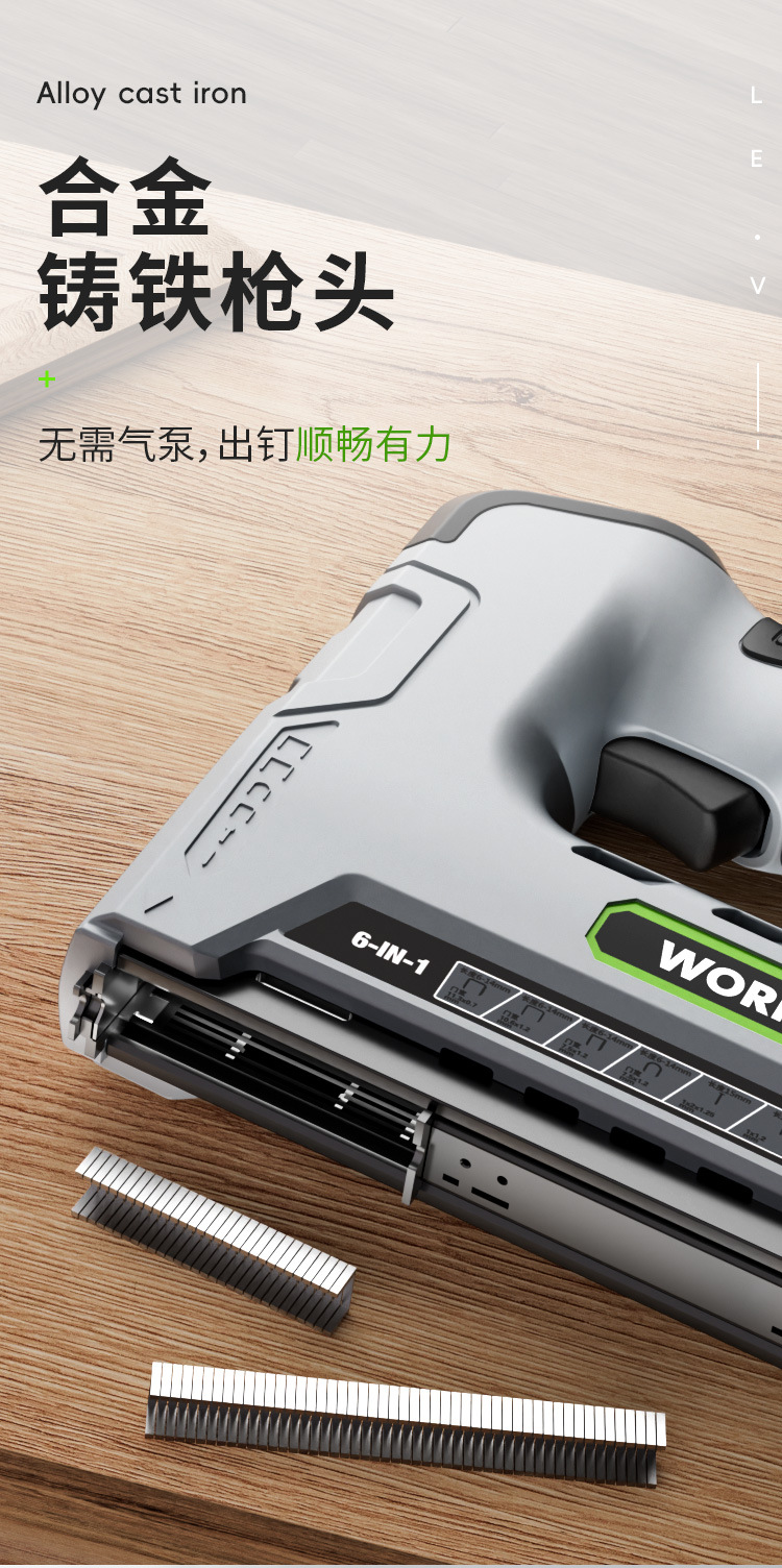 6-in-1 전기 네일 건 F15 네일 건 리튬 전기 네일러 네일 건 코드 네일 충전식 스트레이트 네일 도어 U 자형 목공