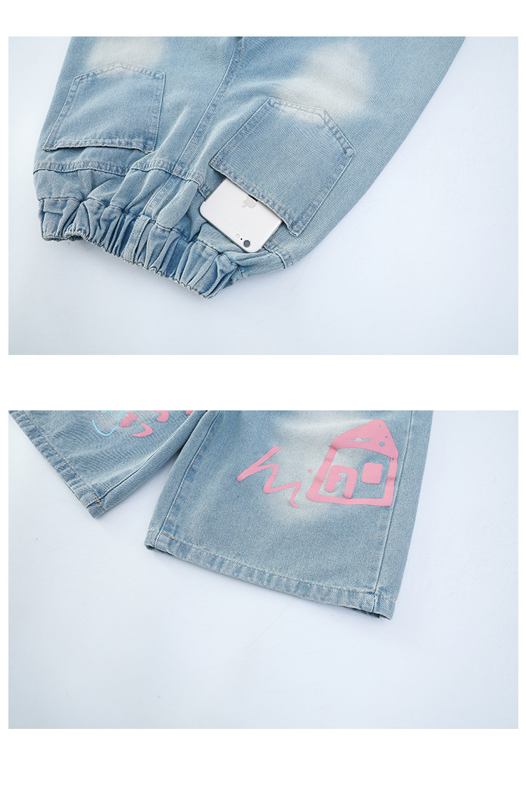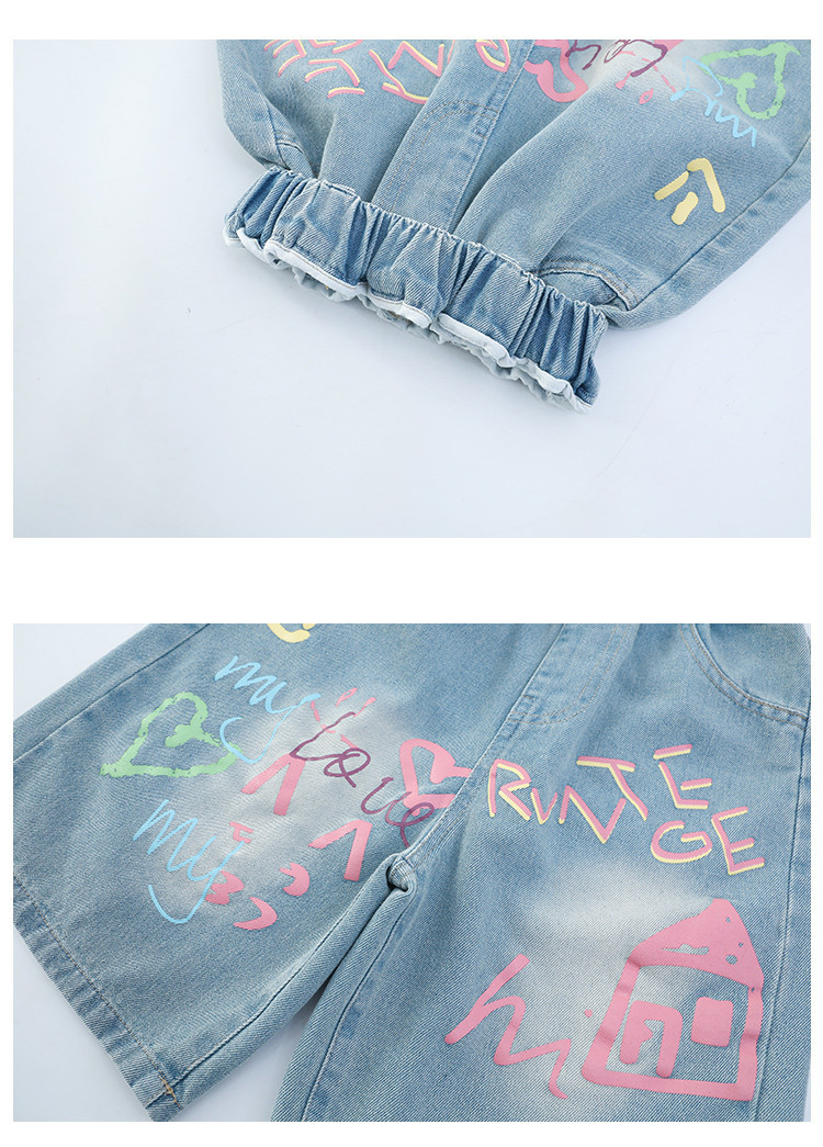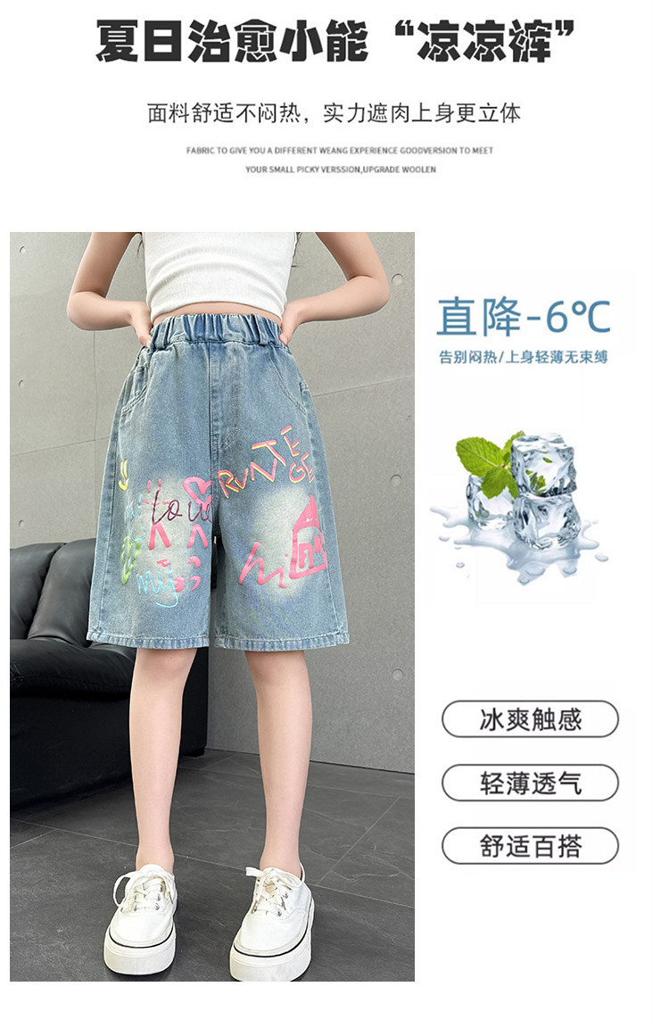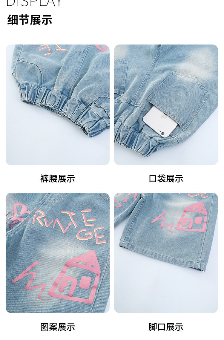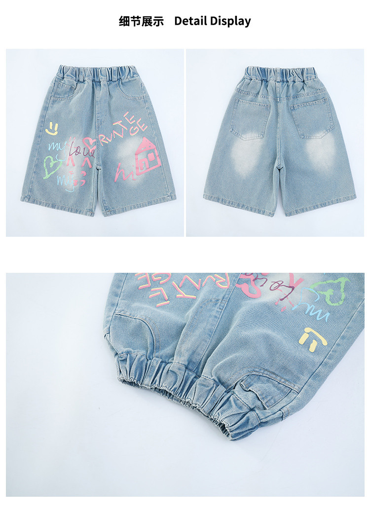 새로운 여름 소녀 중 큰 키즈 만화 패션 서양 스타일 올 매치 데님 반바지 소녀 느슨한 5 점 바지 얇은스토어 가기
