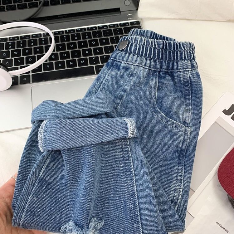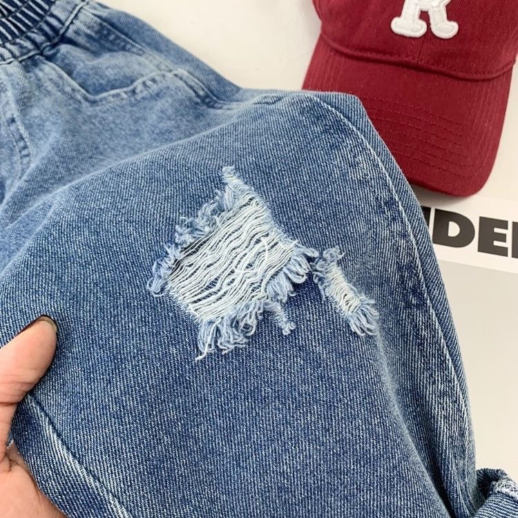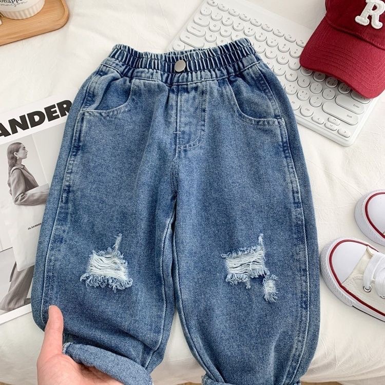 아동복, 남아용 워싱 청바지, 봄, 가을 아동복, 멋진 찢어진 바지, 유아용 패셔너블한 캐주얼 청바지스토어 가기