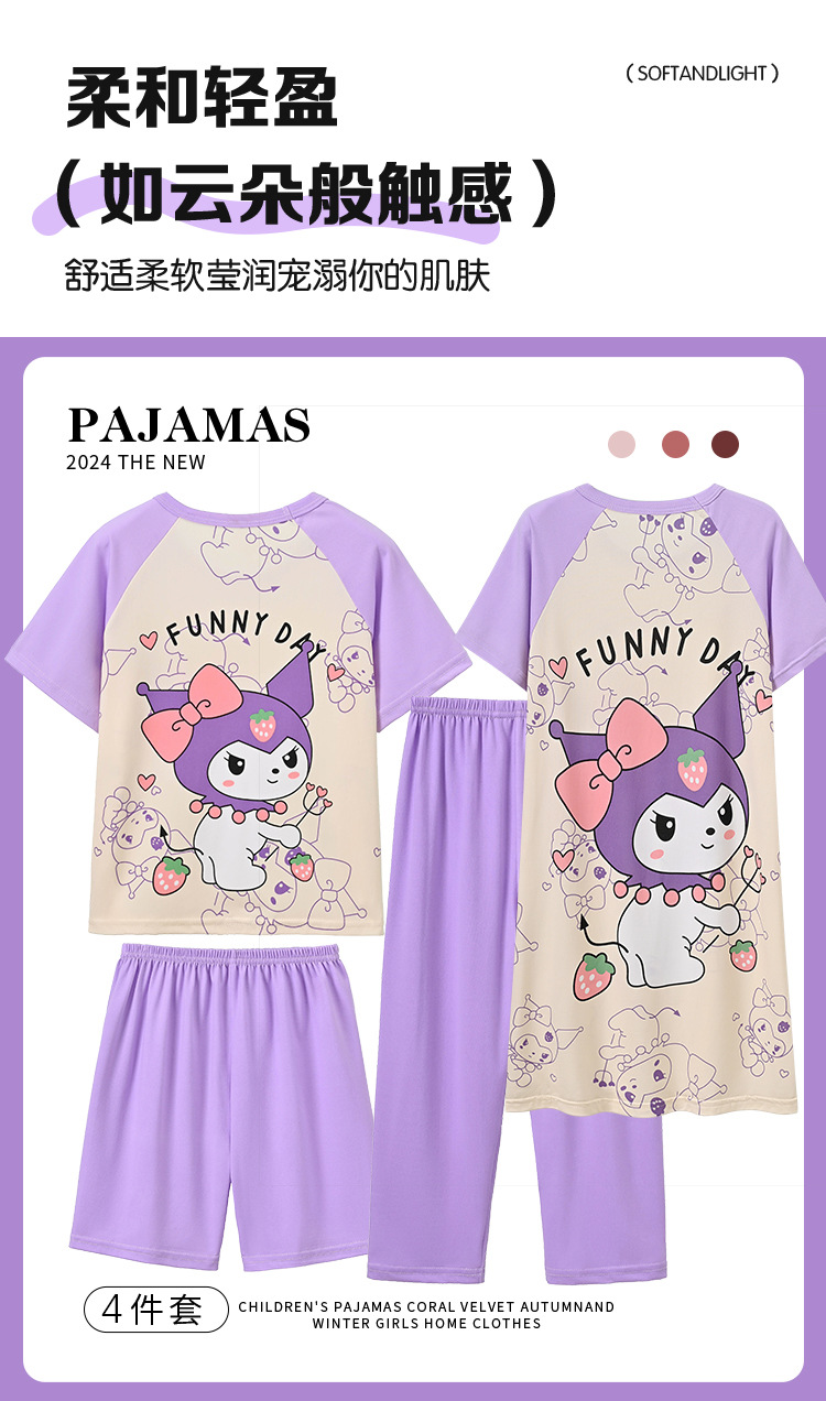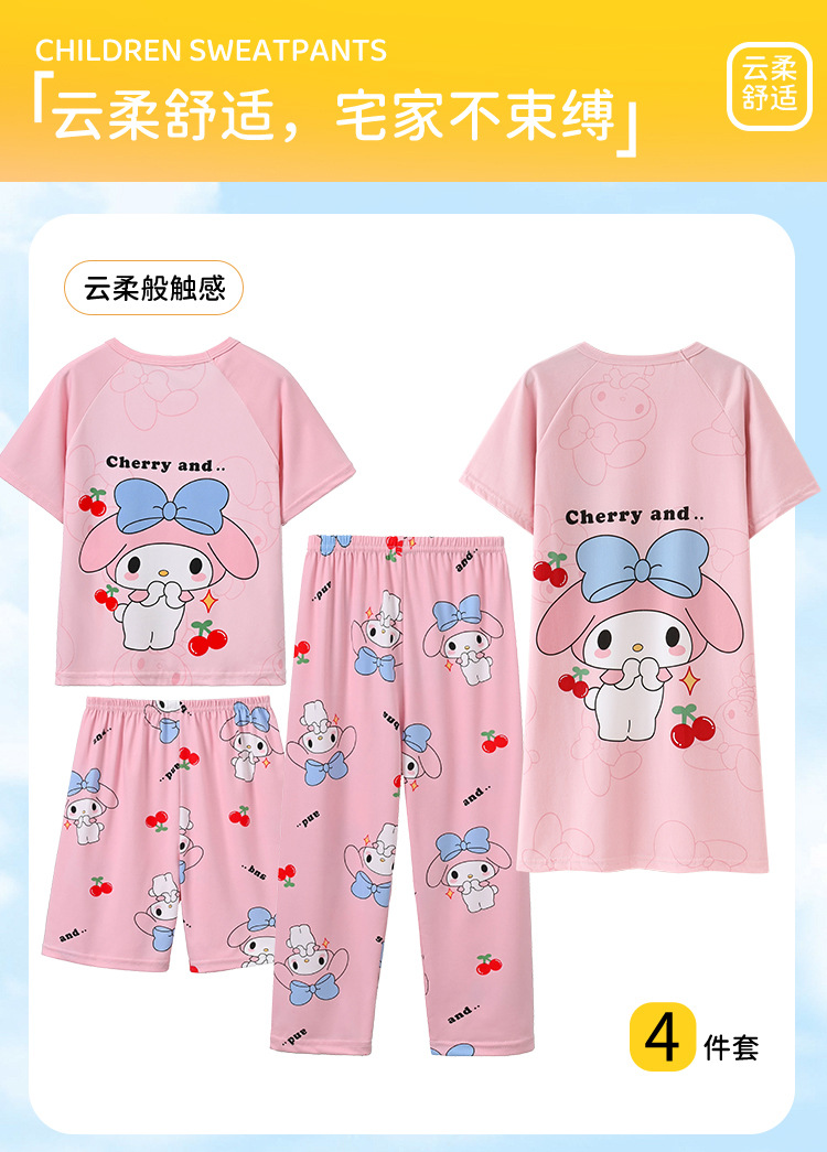 어린이 모조 면 우유 실크 반팔 바지 잠옷 드레스 봄과 여름 얇은 반팔 큰 어린이와 소녀 4 피스 양복스토어 가기