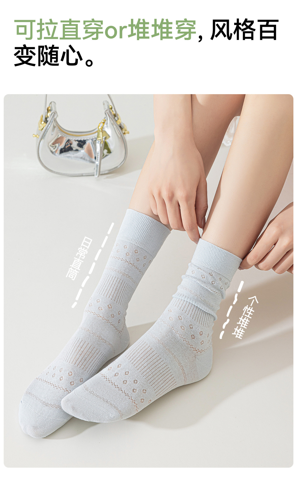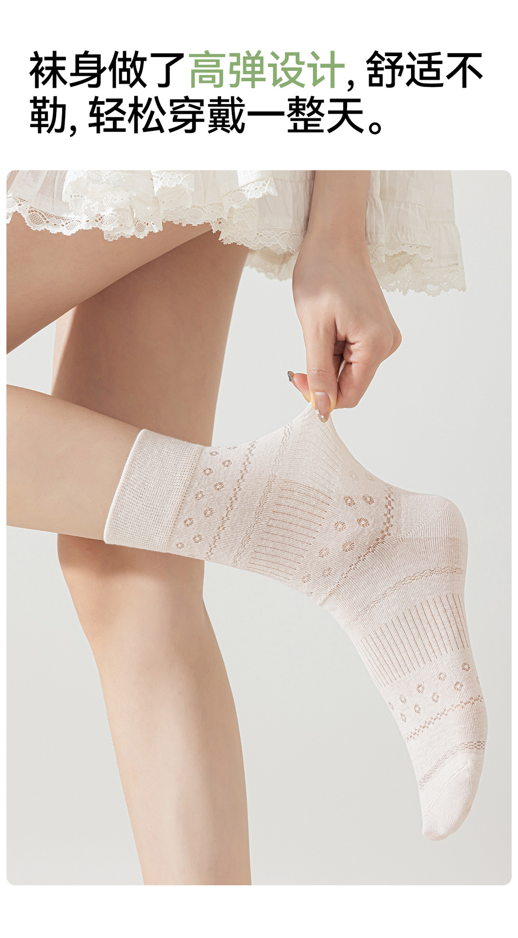 바오나스 여성용 여름 얇은 꽃무늬 중목 양말 미우미우 발레 스타일 통기성 땀 흡수 스타킹스토어 가기