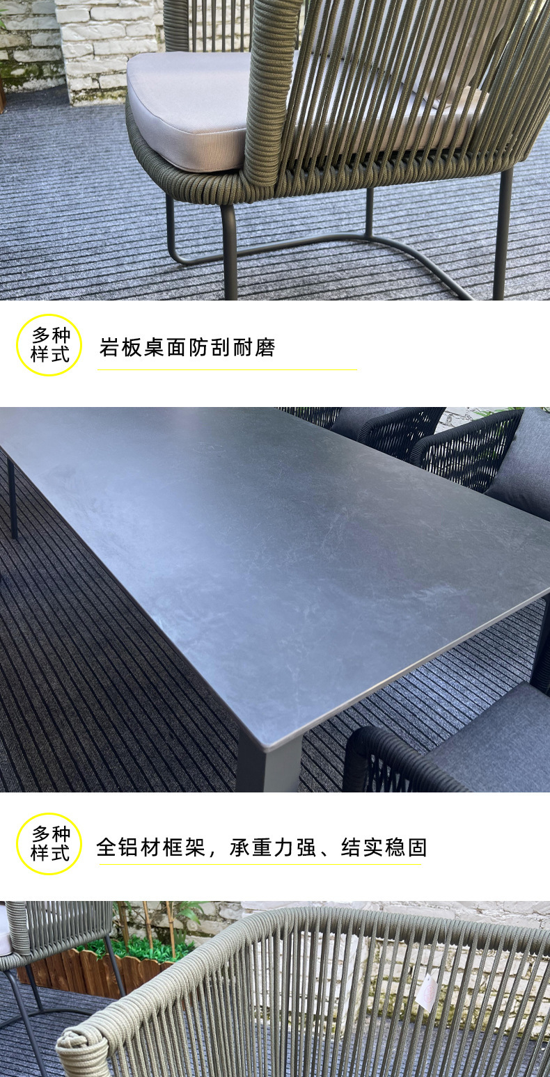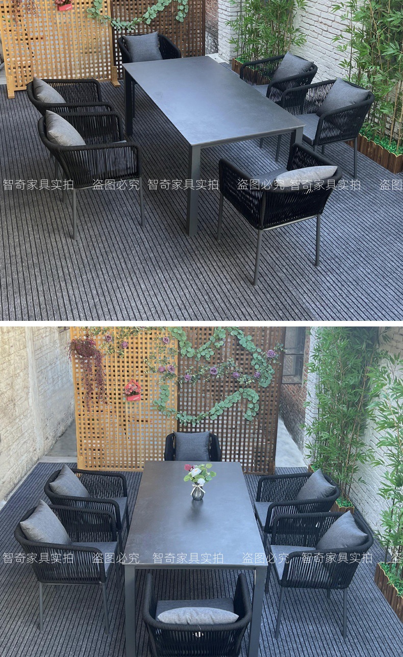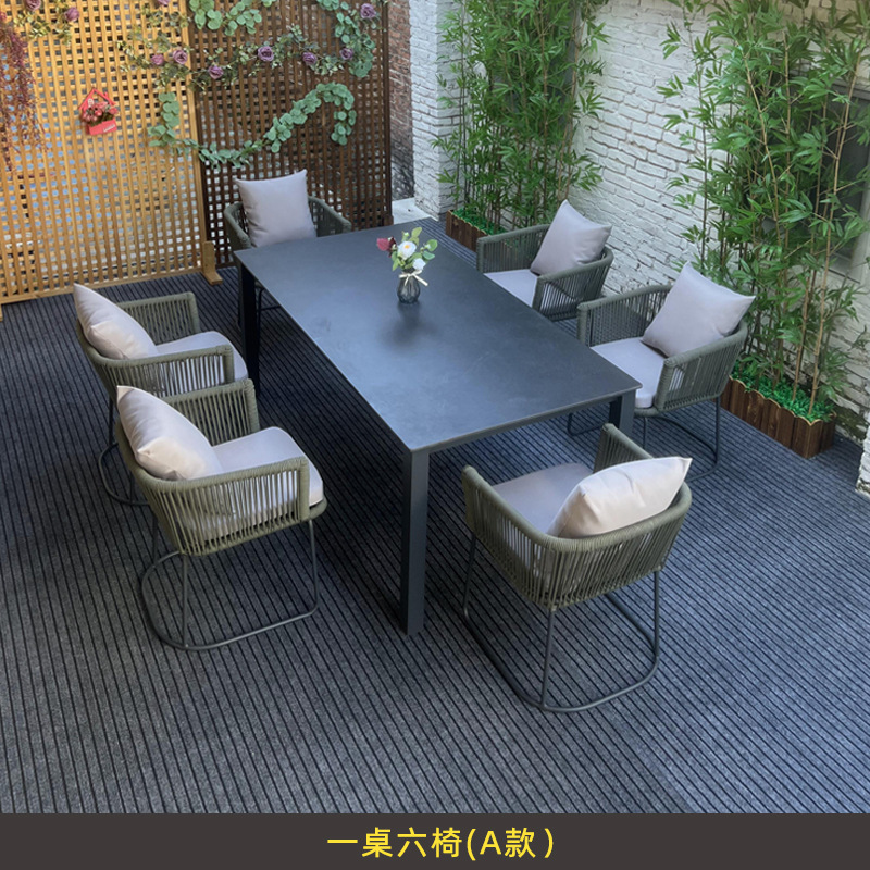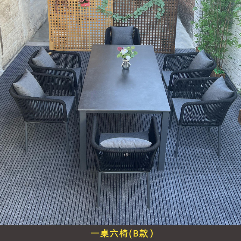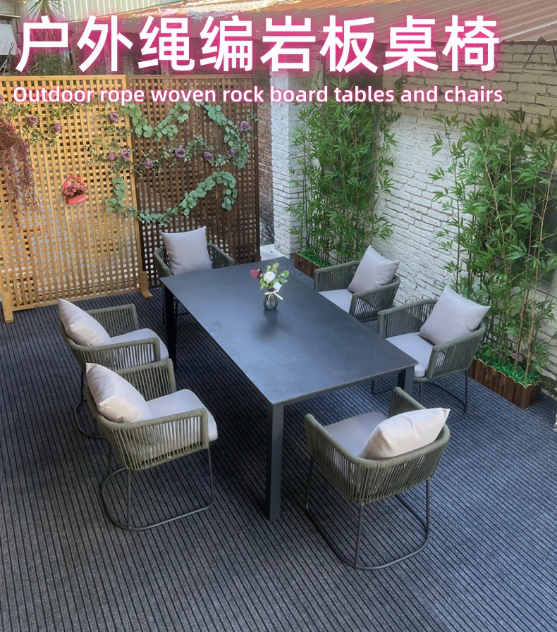 야외 슬레이트 테이블과 의자, 정원 테라스, 방수 및 녹 방지 알루미늄 합금 식탁, 안뜰 호텔 야외 로프 테이블과 의자스토어 가기